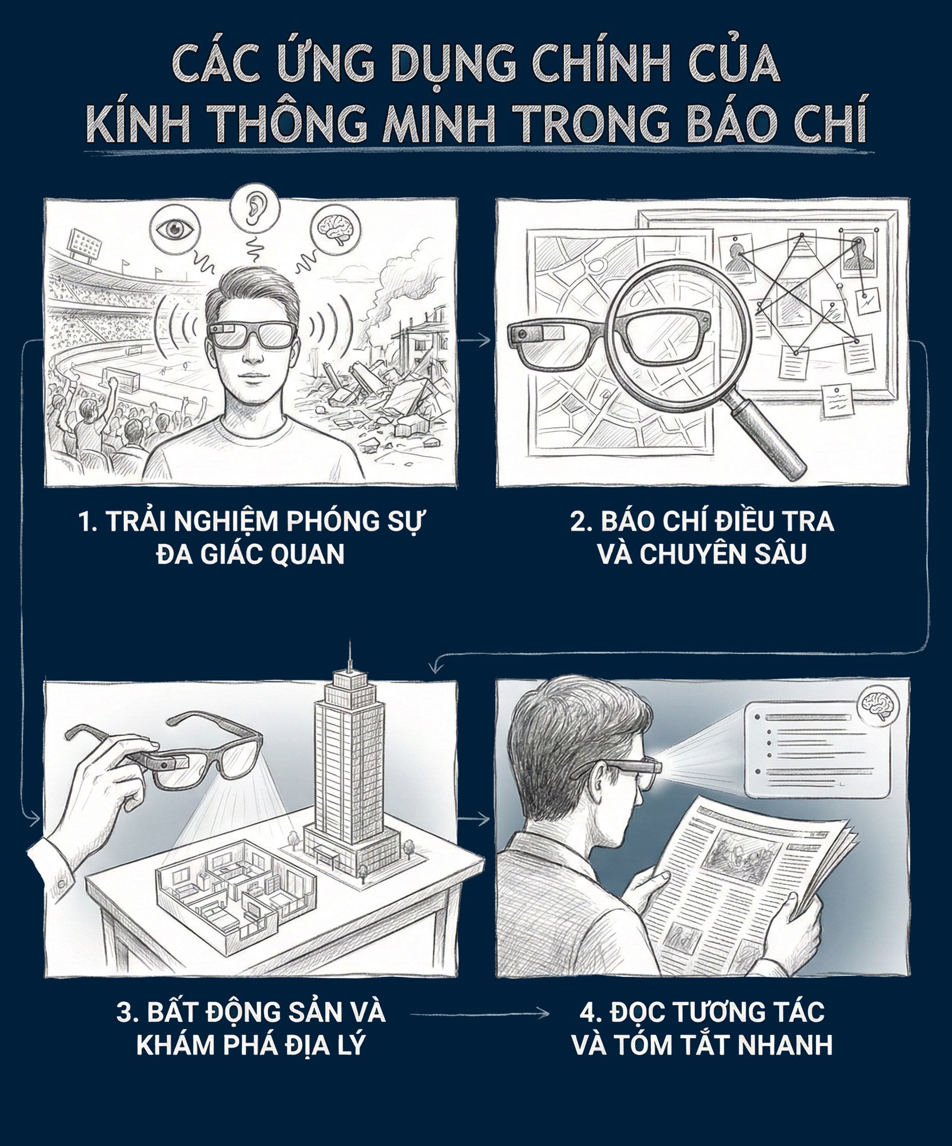 Kính thông minh mở ra một hướng đi mới cho ngành báo chí, chuyển đổi từ việc truyền tải thông tin sáng tạo sang “trải nghiệm đắm chìm” (immersive) cho độc giả. Trong cuộc đua kính thông minh, báo chí không chỉ là bên đưa tin mà còn có cơ hội trở thành nhà cung cấp nội dung chiến lược, định hình lại cách công chúng tiêu thụ thông tin.