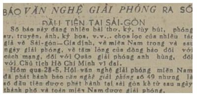 Bản tin về báo Văn nghệ giải phóng đăng trên báo Hà Nội mới ngày 29/5/1975.