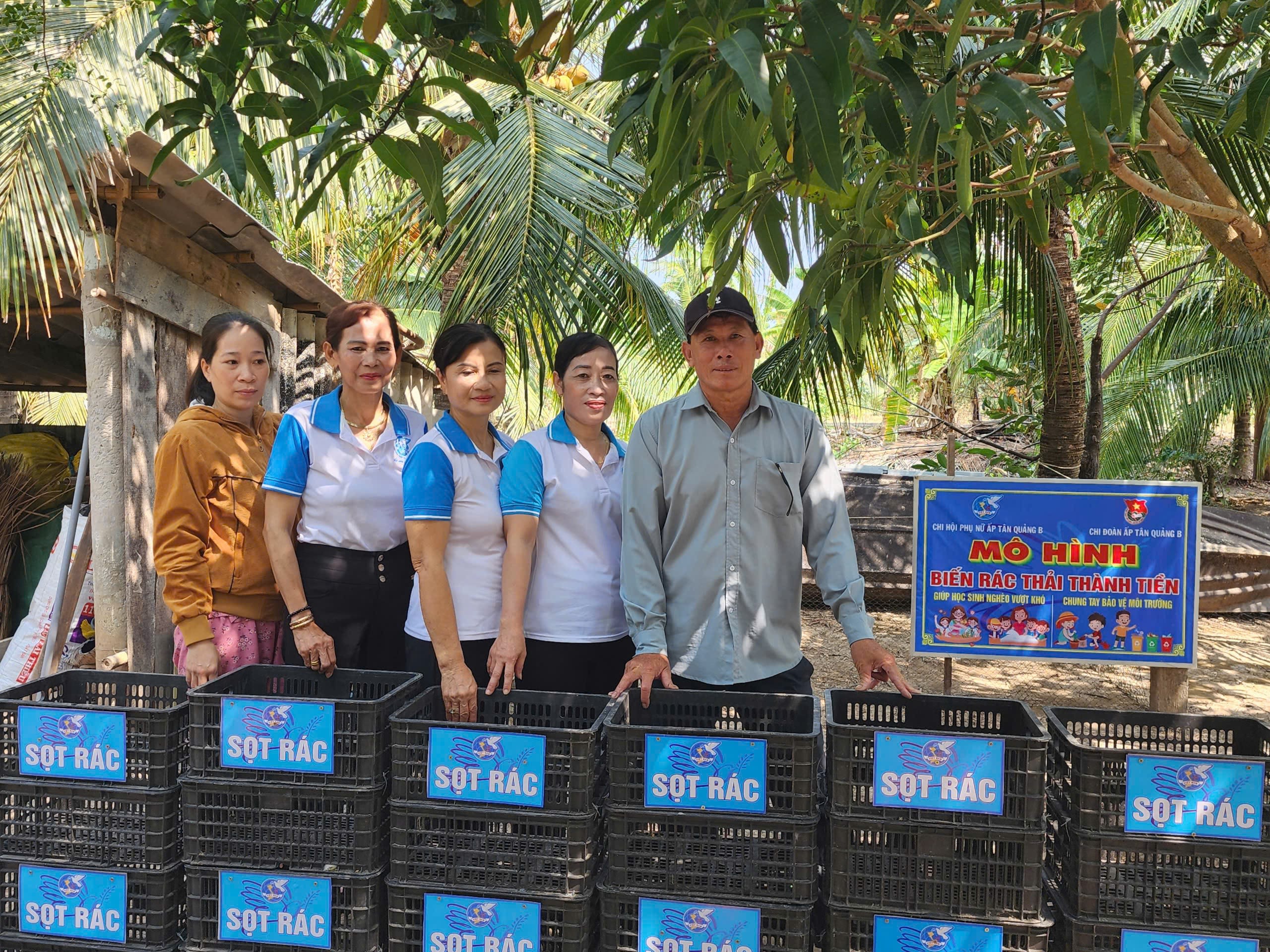 Chi hội phụ nữ xã Nguyễn Việt Khái, tỉnh Cà Mau ra mắt mô hình sọt rác lưu động “Biến rác thải thành tiền”, hỗ trợ học sinh nghèo, học sinh có hoàn cảnh khó khăn. (Ảnh: camau.gov.vn)