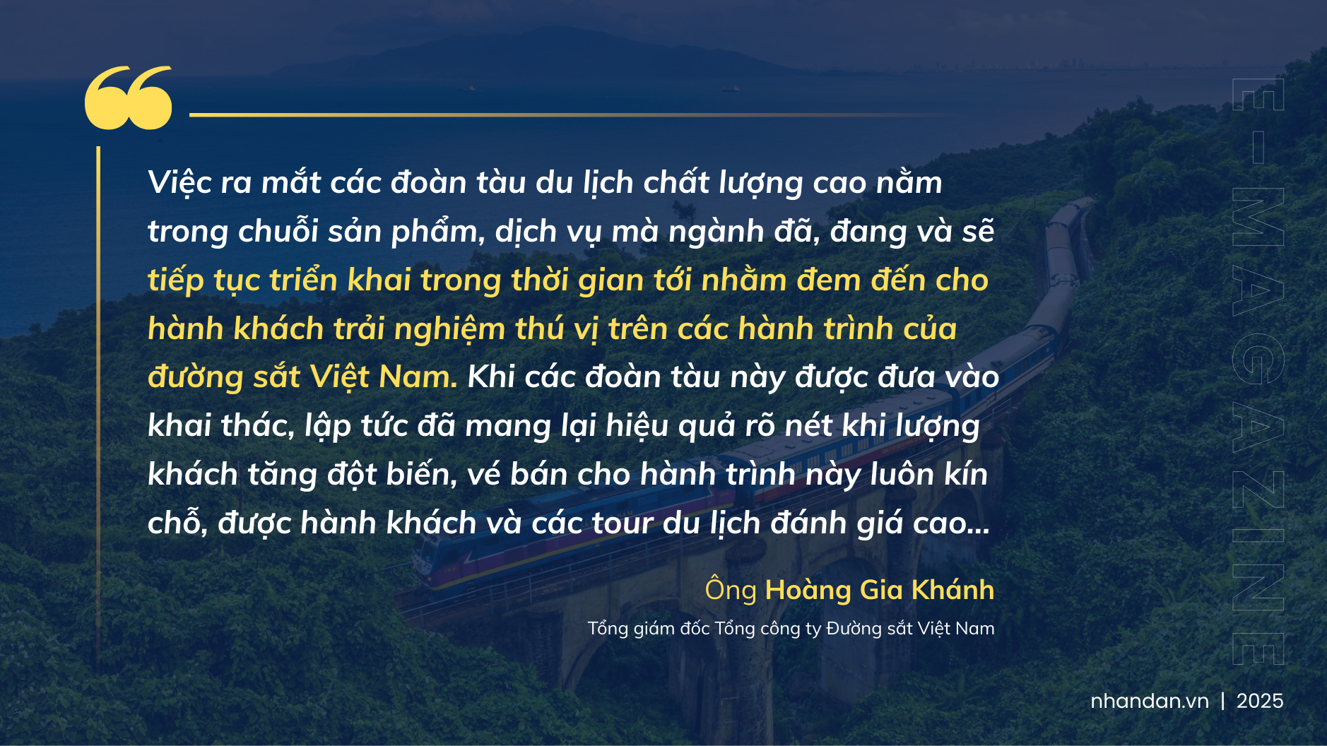 Bước vào giai đoạn phát triển mới, sứ mệnh của ngành đường sắt giờ đây không chỉ là phương tiện di chuyển, mà còn mang lại những trải nghiệm đặc biệt, giúp du khách khám phá vẻ đẹp thiên nhiên, văn hóa và lịch sử của mỗi vùng đất, trở thành hành trình khám phá vẻ đẹp di sản của đất nước.