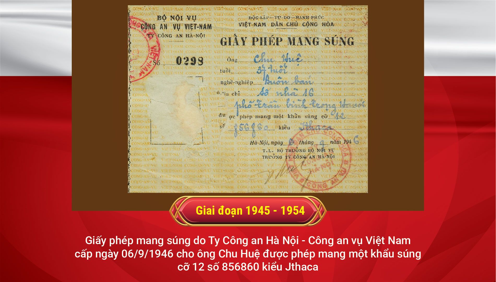 Tiếp đó, thông qua việc ban hành các văn bản pháp lý như Thông tư số 147/VP-NV ngày 103/1954 của Bộ Công an quy định chính sách xử lý các loại vũ khí và Điều lệ 392/TTg ngày 17/9/1954 của Thủ tướng chính phủ về quản lý vũ khí, chính quyền đã thiết lập cơ chế quản lý nghiêm ngặt vật liệu nổ.