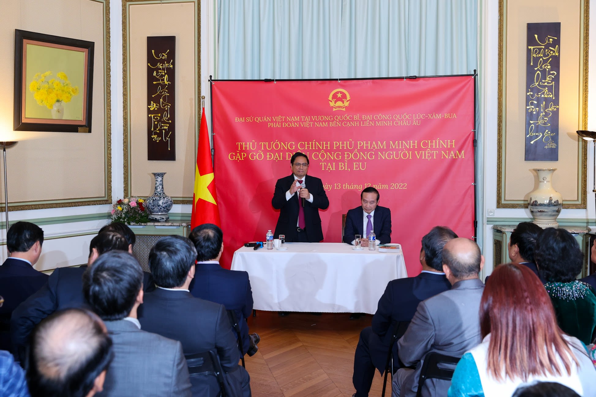 Trong lịch trình bận rộn của chuyến công tác, Thủ tướng Phạm Minh Chính đã dành thời gian gặp gỡ đại diện cộng đồng người Việt Nam tại Bỉ và một số nước châu Âu. Tại buổi gặp mặt, thay mặt lãnh đạo Đảng, Nhà nước Việt Nam và nhân danh cá nhân, Thủ tướng gửi lời thăm hỏi, chúc sức khỏe và hạnh phúc tới bà con có mặt tại buổi gặp mặt cũng như cộng đồng người Việt tại Bỉ và châu Âu.