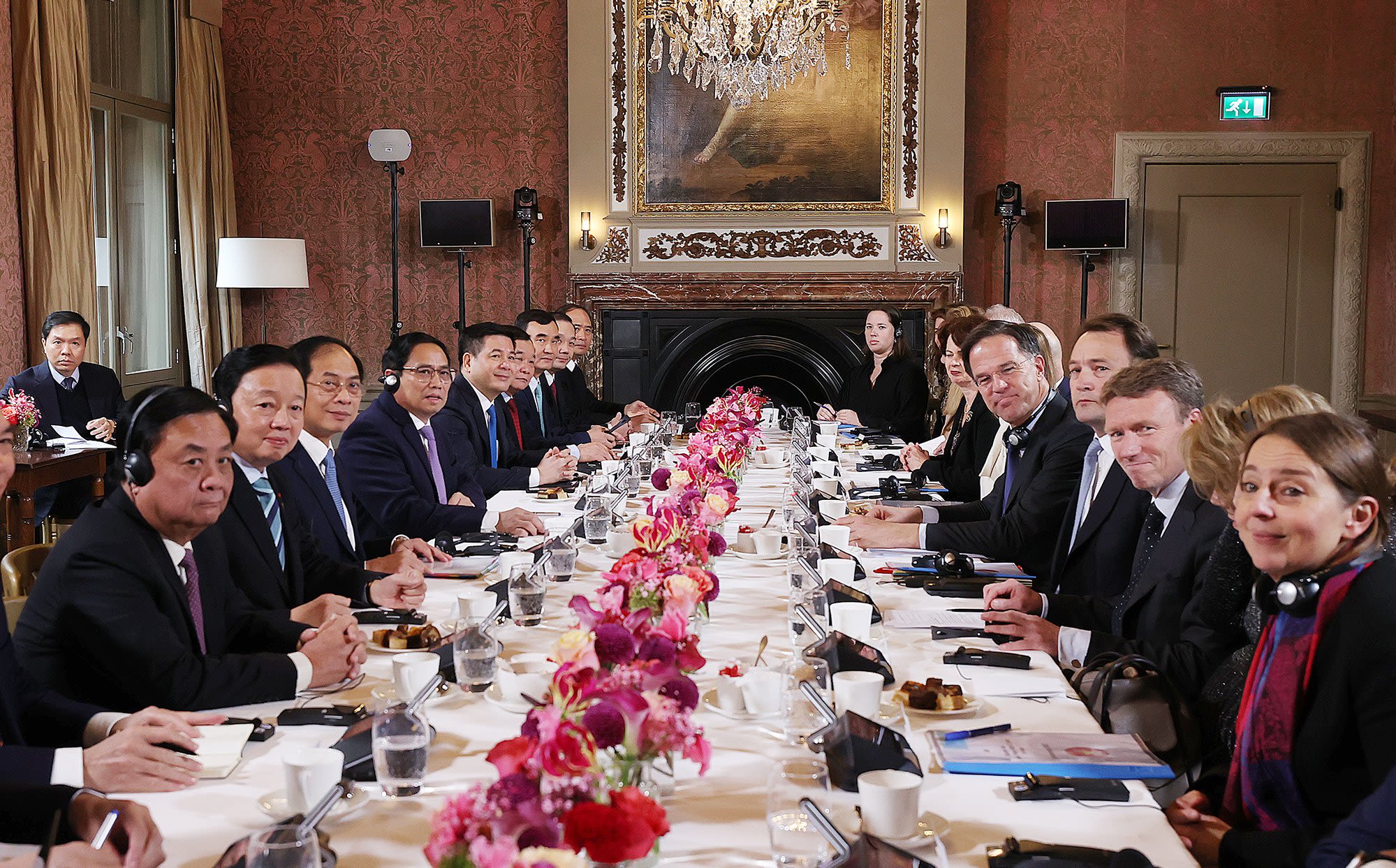 Hai nhà lãnh đạo nhất trí đẩy mạnh, làm sâu sắc hợp tác Việt Nam-Hà Lan trong khuôn khổ Đối tác chiến lược về thích ứng với biến đổi khí hậu và Đối tác chiến lược về nông nghiệp bền vững. Hà Lan sẵn sàng chia sẻ kinh nghiệm, kiến thức, công nghệ và các khoản vay ưu đãi để giúp Việt Nam phát triển nông nghiệp bền vững, hệ thống logistics, chuyển đổi xanh, bảo vệ đa dạng sinh học, quản lý nước.