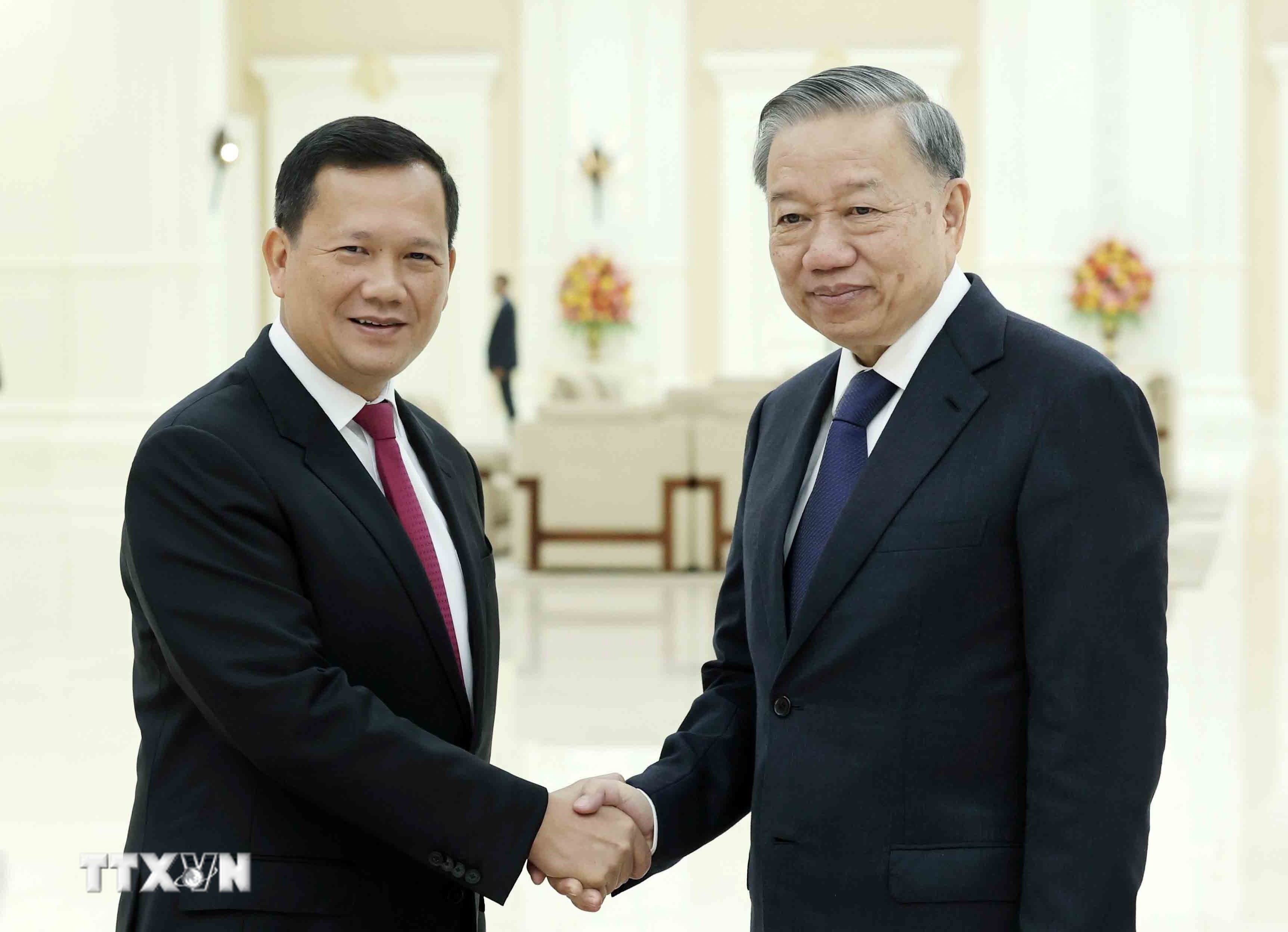 Chủ tịch nước Tô Lâm với Thủ tướng Campuchia Hun Manet. Ảnh: TTXVN