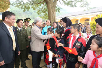 Tổng Bí thư Nguyễn Phú Trọng và người dân thôn Thượng Điền, xã Vinh Quang, huyện Vĩnh Bảo, thành phố Hải Phòng, ngày 15/11/2017.