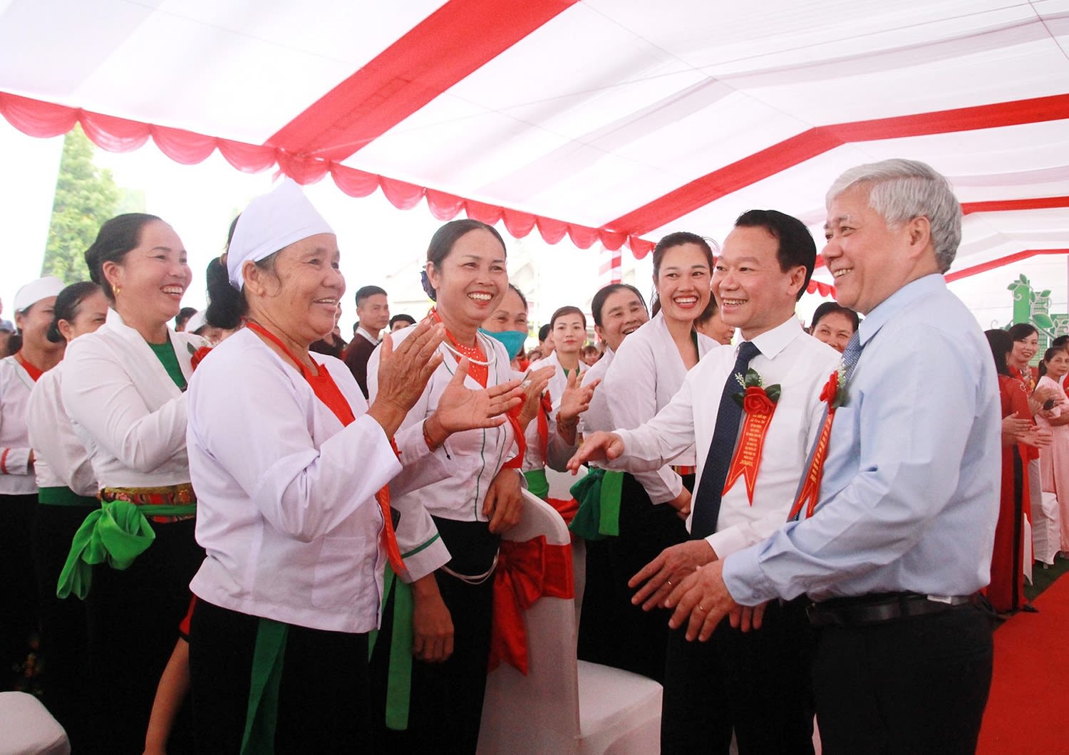 Bí thư Trung ương Đảng, Chủ tịch Ủy ban Trung ương Mặt trận Tổ quốc Việt Nam Đỗ Văn Chiến chia sẻ niềm vui với người dân xã Quy Mông, huyện Trấn Yên, tỉnh Yên Bái đạt chuẩn nông thôn mới nâng cao (tháng 11/2022). (Ảnh: baotainguyenmoitruong.vn)
