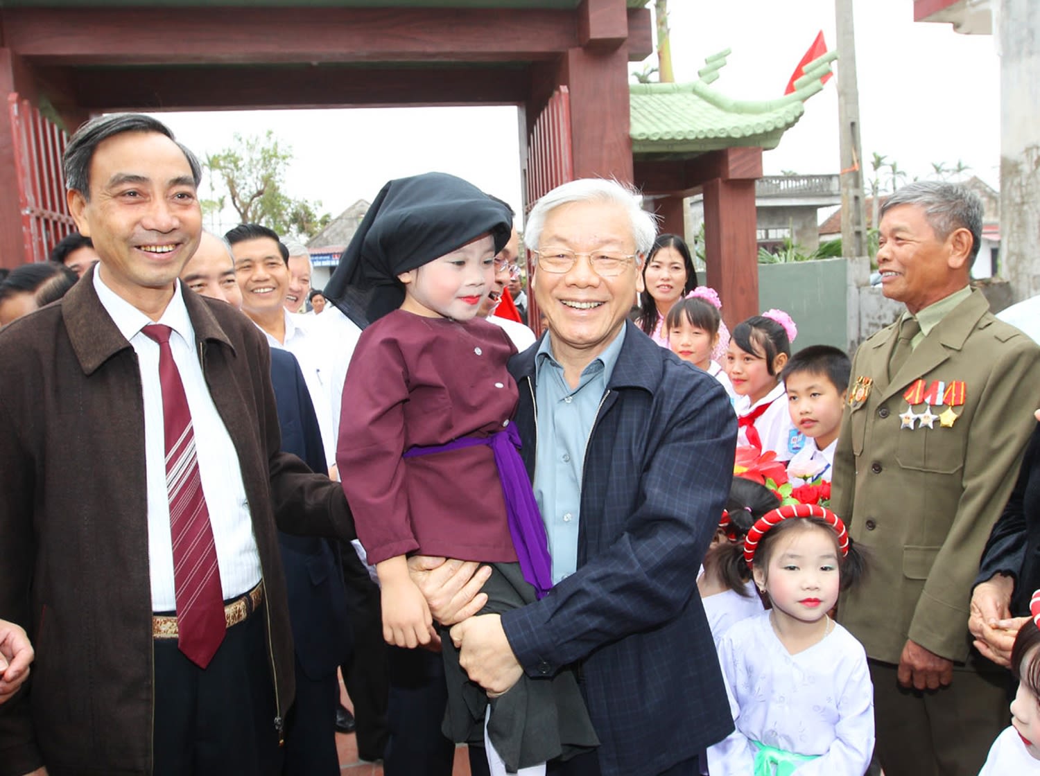 Tổng Bí thư Nguyễn Phú Trọng tham dự ngày hội đại đoàn kết toàn dân tộc tại khu dân cư xóm 4, xã Hải Bắc, huyện Hải Hậu (tỉnh Nam Định). (Ảnh: TTXVN)