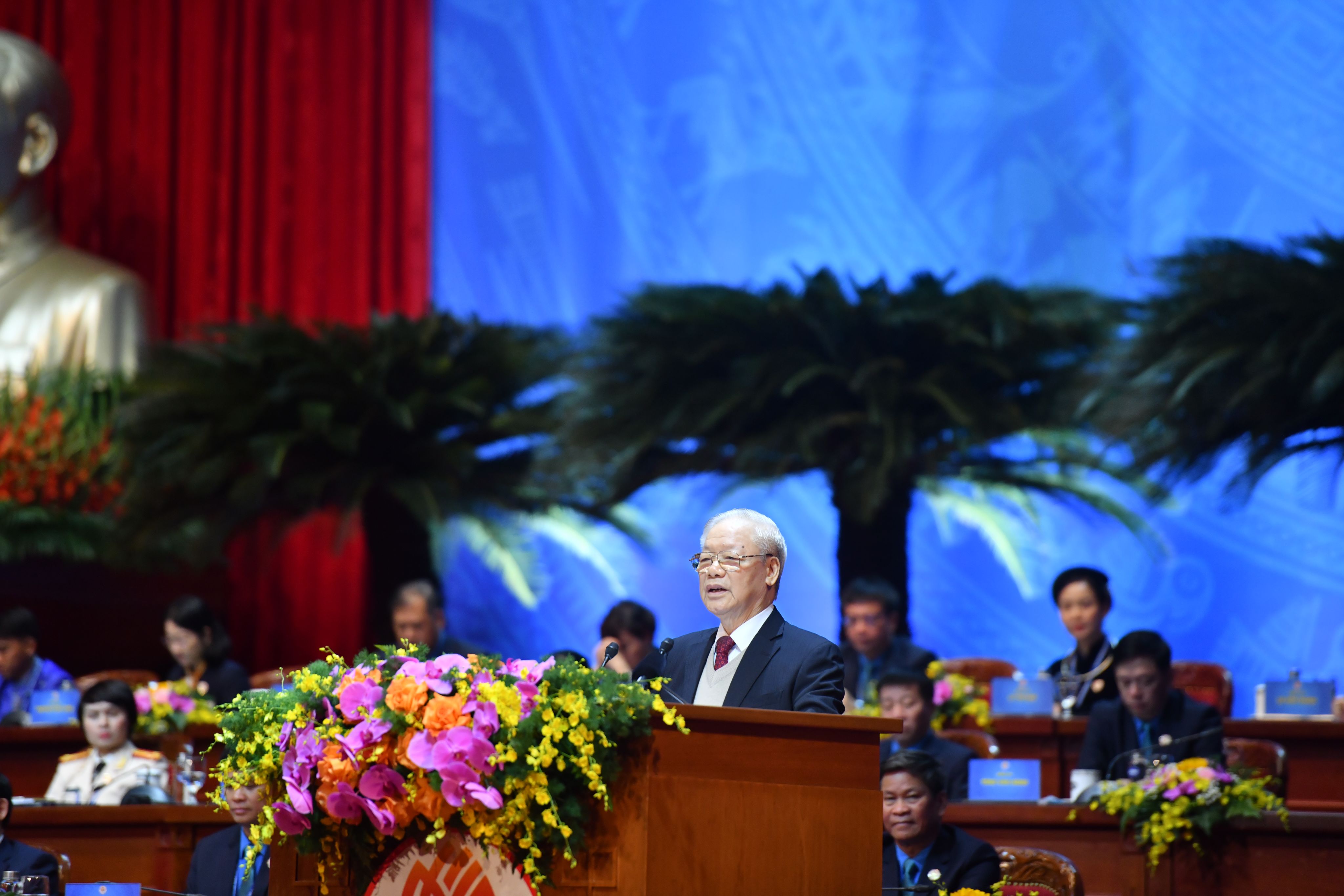 Tổng Bí thư Nguyễn Phú Trọng phát biểu chỉ đạo Đại hội XIII Công đoàn Việt Nam nhiệm kỳ 2023-2028. Ảnh: ĐĂNG KHOA