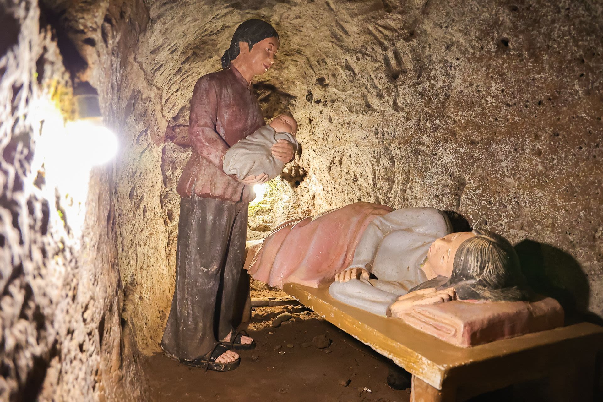 Người dẫn đường 88 tuổi lúc này đã dừng lại ở trước một dãy vách gần sát lối lên mặt đất, chỉ tay vào 2,3 chiếc hang sâu được khoét vào phía trong chừng gần 2m, cao 1,5m rồi nhẹ bẫng nói: “Đây chính là ‘nhà’ của chúng tôi khi đó”.