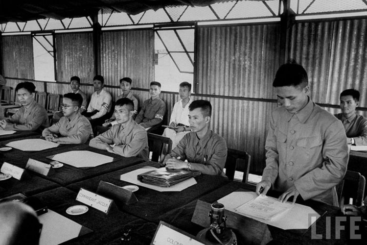 Thiếu tướng Văn Tiến Dũng, trưởng đoàn đại biểu Quân đội Nhân dân Việt Nam phát biểu tại Hội nghị Trung Giã (4/7/1954) (Ảnh: Tạp chí Life)