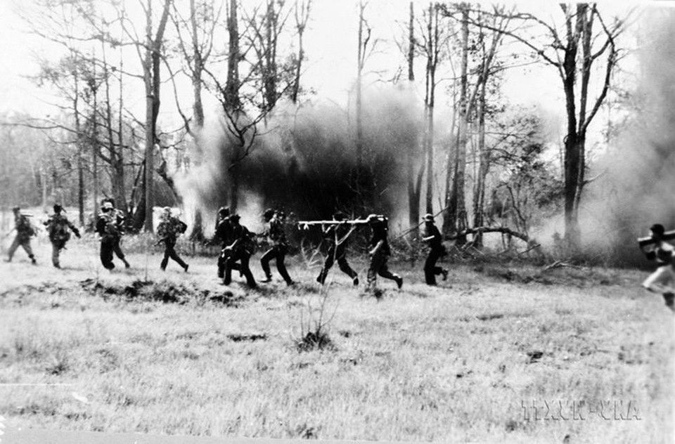 Quân Giải phóng truy kích địch trong trận tiến công ngày 1/2/1968 tại khu vực Bà Chiêm, tỉnh Tây Ninh. (Ảnh: Tư liệu TTXVN)