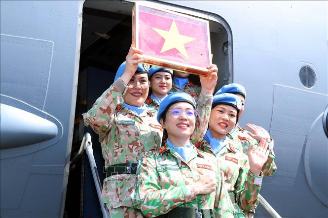 Các nữ sĩ quan Bệnh viện dã chiến cấp 2 số 6 lên đường làm nhiệm vụ.
