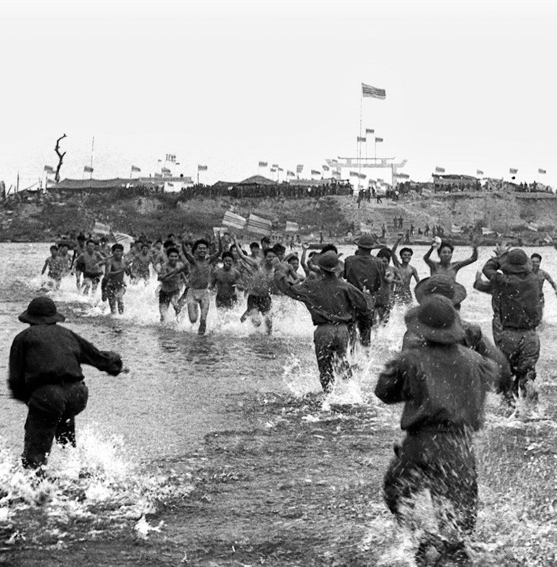 “Thoát khỏi ngục tù” là bức ảnh đầu tiên trong chùm ảnh “Từ ngục tối thắng lợi trở về” của nhà báo Chu Chí Thành.