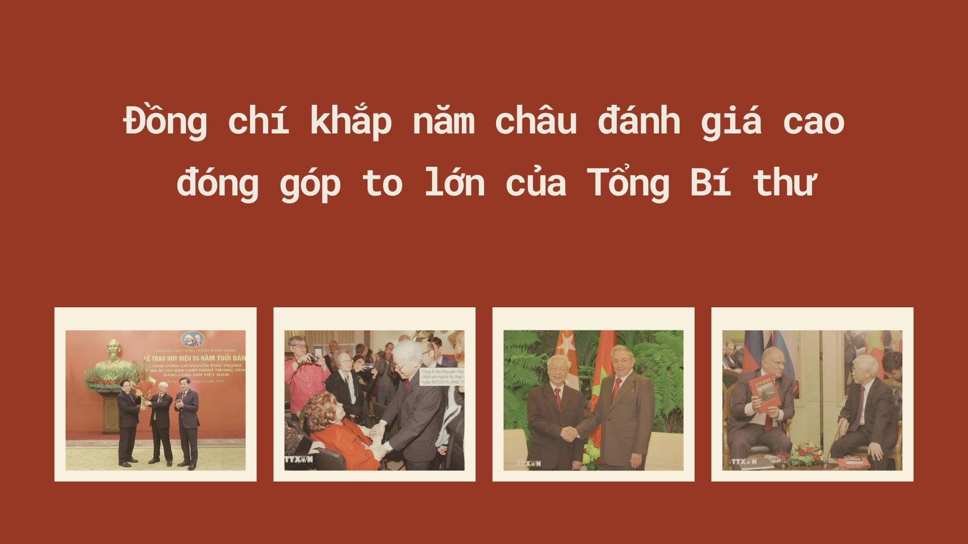 Lãnh đạo các đảng cộng sản trên thế giới đã dành những lời khâm phục cho Tổng Bí thư Nguyễn Phú Trọng, người đã dành "cả cuộc đời cho sự nghiệp của Đảng, của đất nước và hạnh phúc của nhân dân". Từ châu Á, châu Phi, châu Mỹ, châu Âu, lãnh đạo các đảng cộng sản trên thế giới đã dành những lời khâm phục, đề cao những đóng góp to lớn của Tổng Bí thư Nguyễn Phú Trọng.