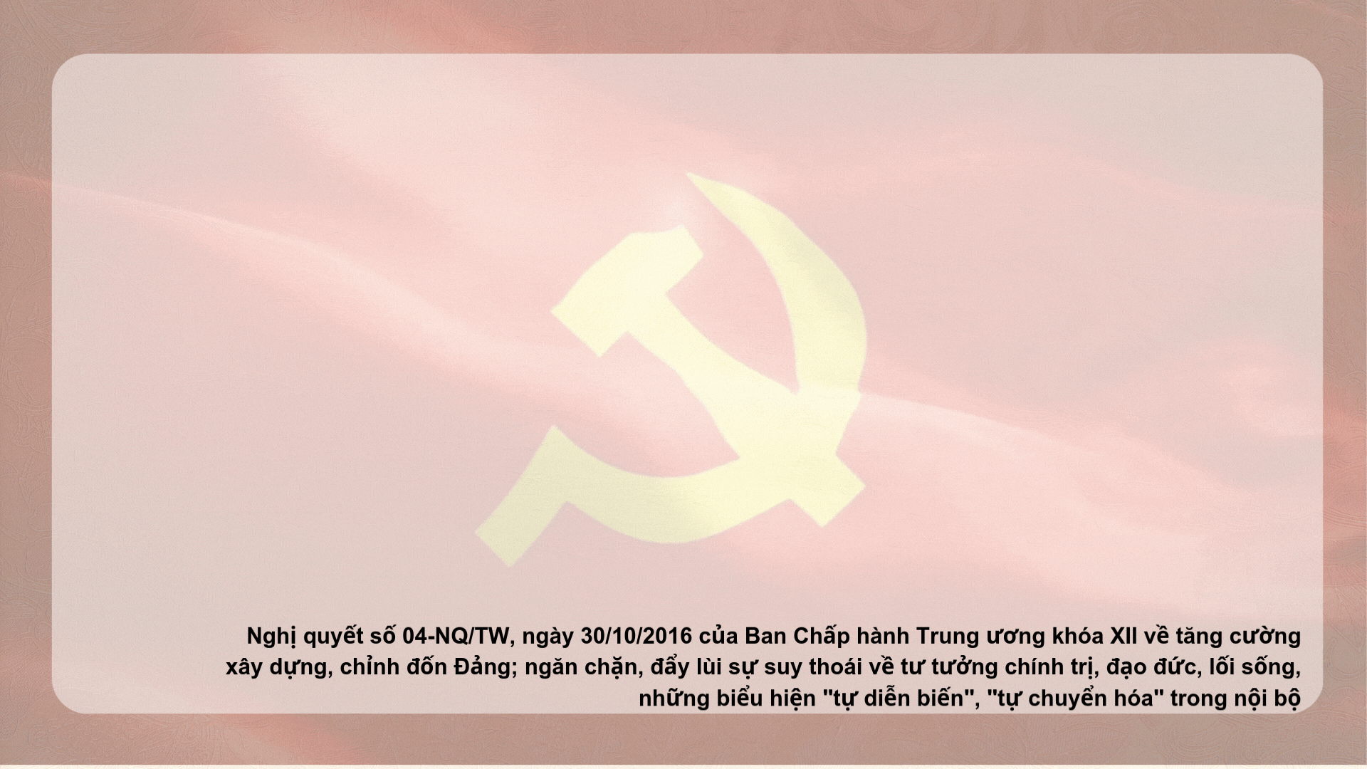 Kiên quyết đấu tranh chống chủ nghĩa cá nhân, những biểu hiện suy thoái về đạo đức, lối sống trong Đảng, kịp thời đưa ra khỏi Đảng những đảng viên thoái hóa, biến chất. Tư tưởng, hành động cá nhân chủ nghĩa, những biểu hiện suy thoái về đạo đức, lối sống luôn gắn liền với suy thoái về tư tưởng chính trị và đó cũng là biểu hiện vi phạm nguyên tắc, kỷ luật đảng về mặt tổ chức. Đấu tranh, sàng lọc, loại bỏ những phần tử thoái hóa, biến chất, để Đảng trong sạch, vững mạnh hơn.