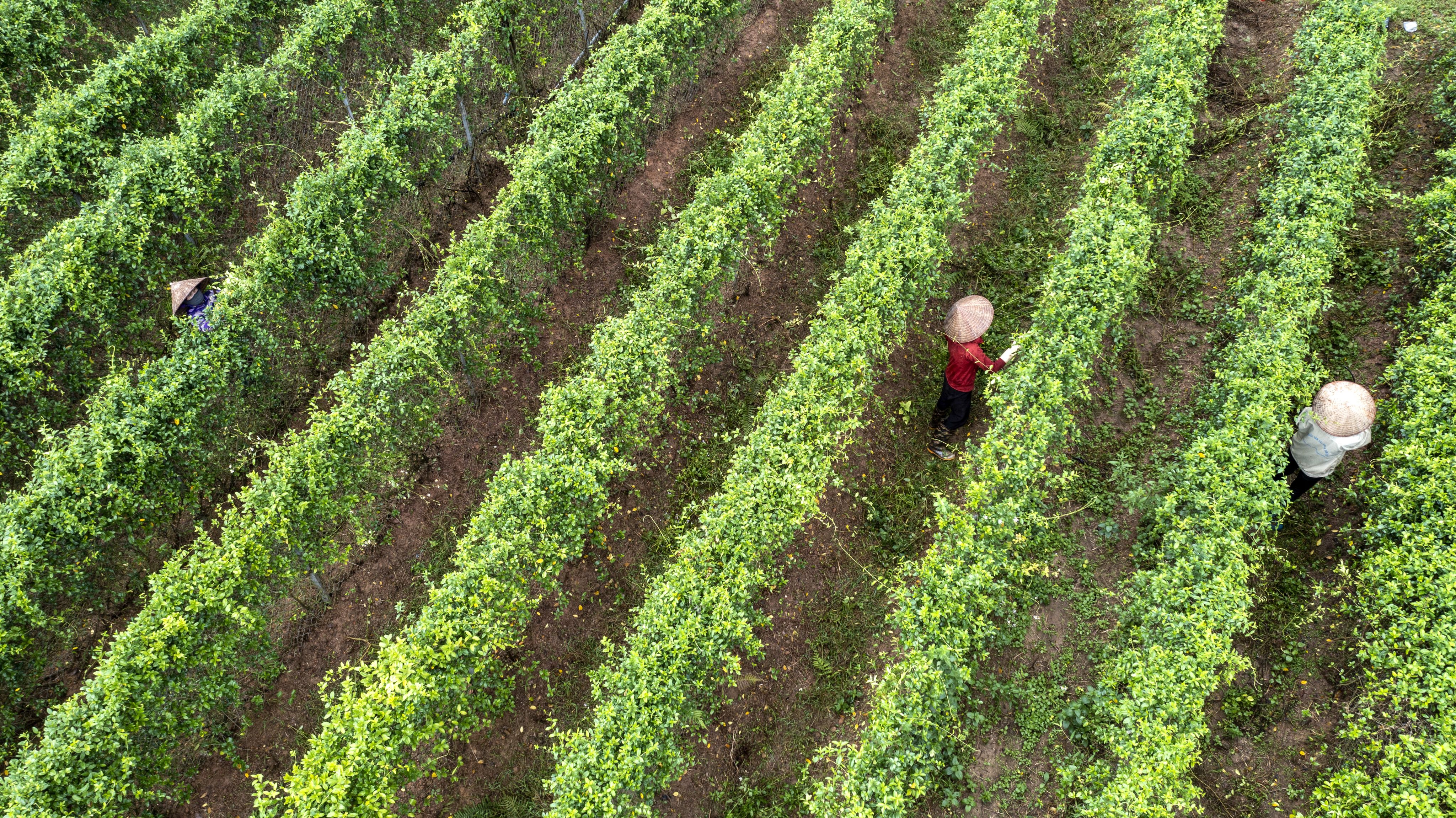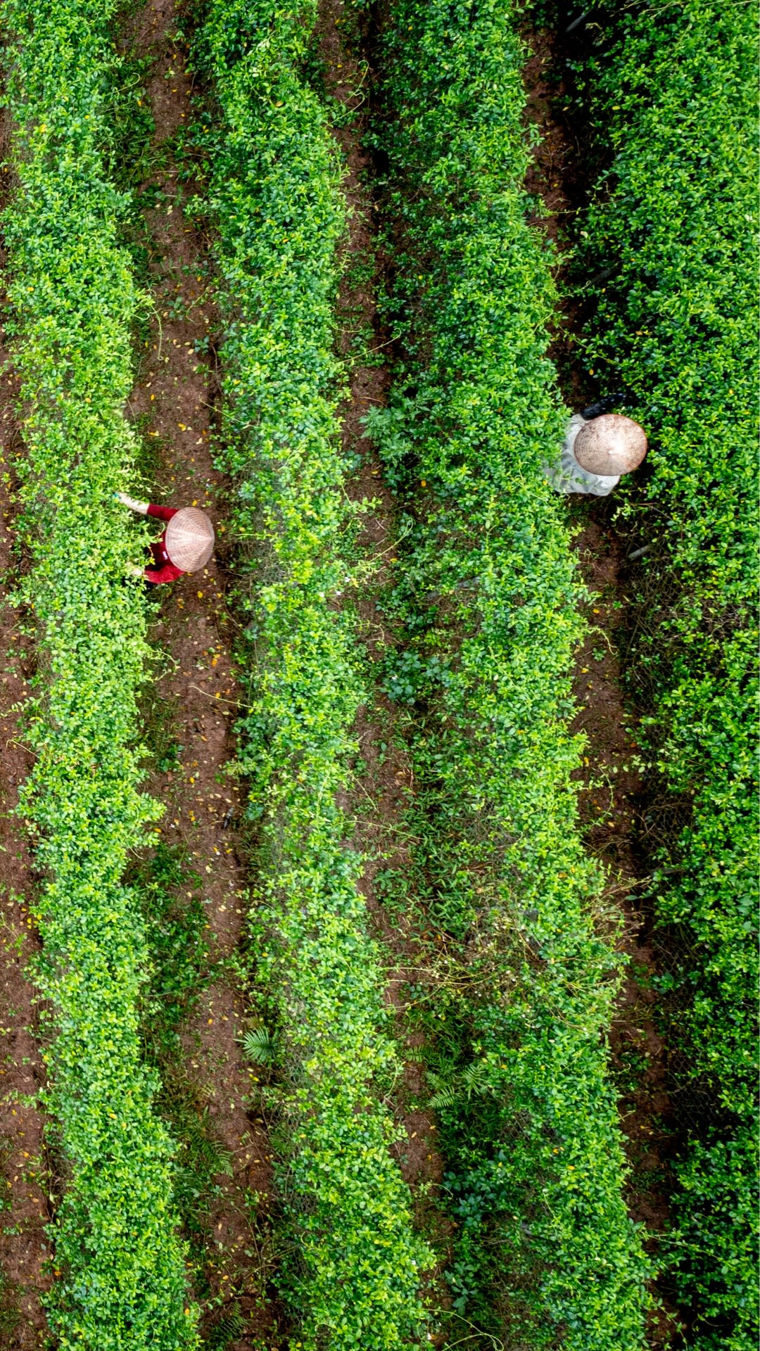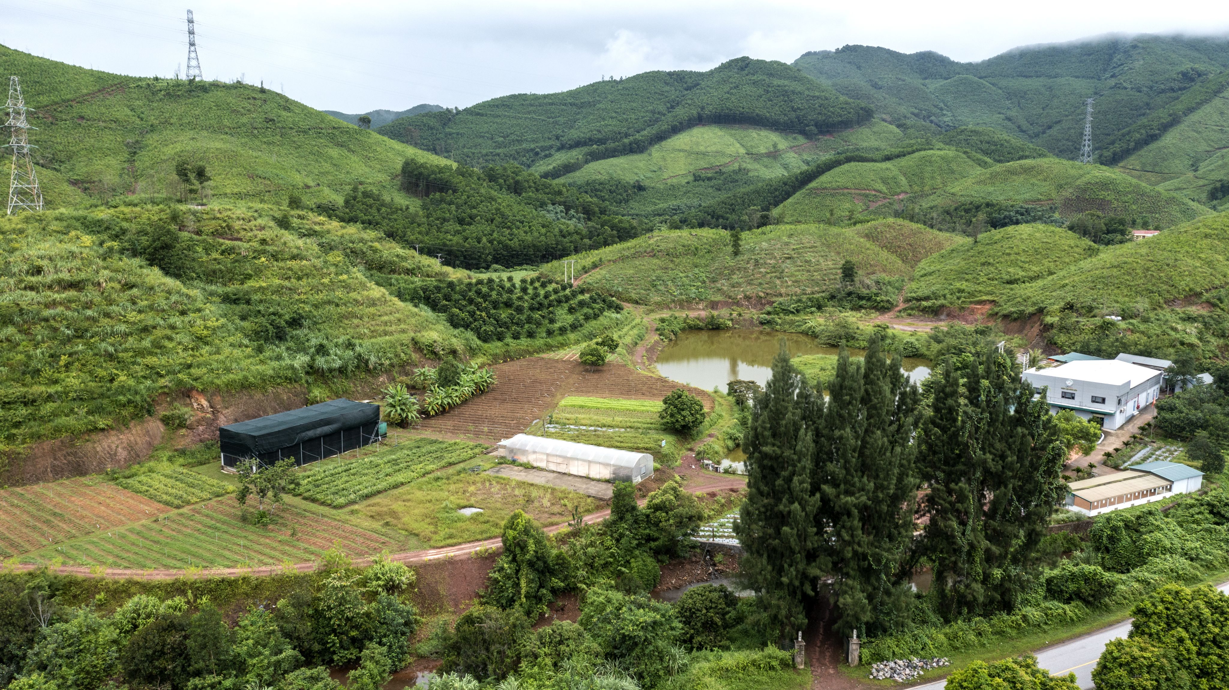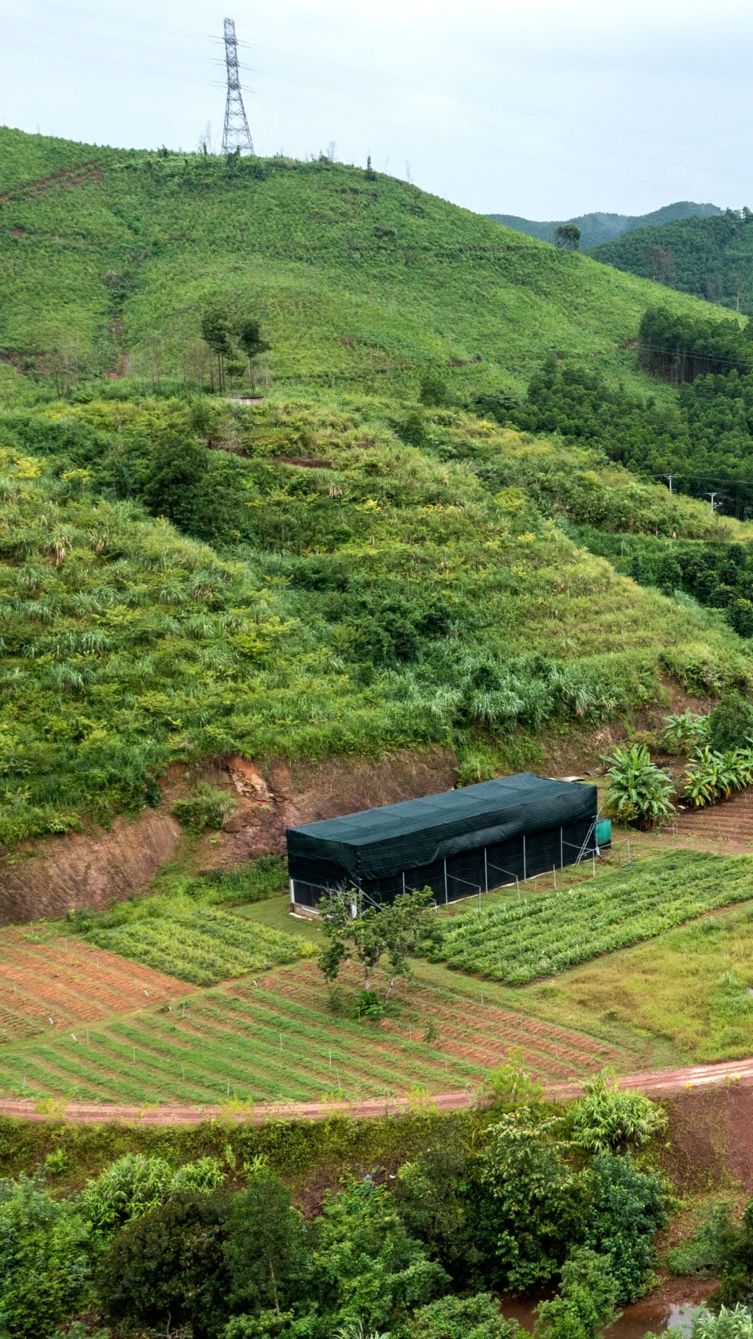 Một góc vườn dược liệu xanh mướt nhìn từ trên cao của Công ty TNHH Nuôi trồng, sản xuất và chế biến dược liệu Đông Bắc.