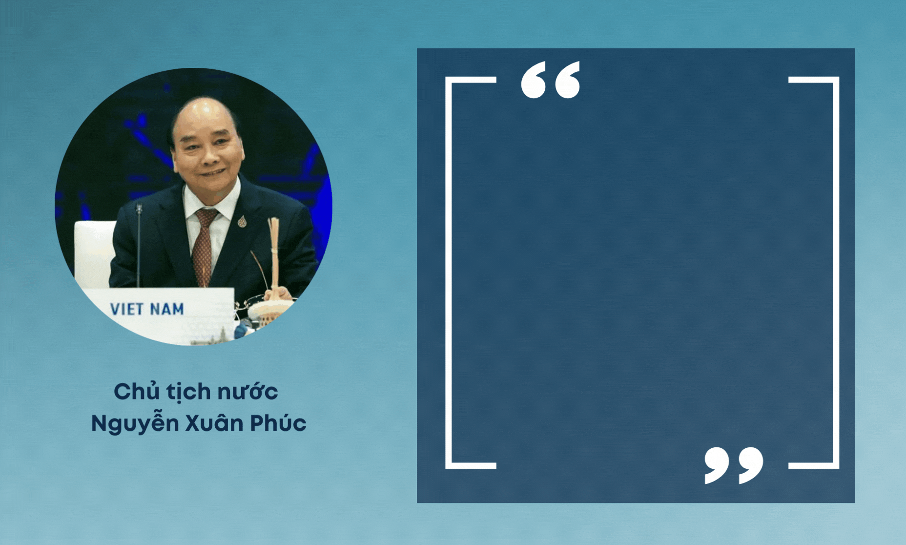 Tại các hội nghị, phiên đối thoại, Chủ tịch nước Nguyễn Xuân Phúc chia sẻ chủ trương của Việt Nam về chuyển đổi số quốc gia, phát triển nền kinh tế xanh, kinh tế tuần hoàn với người dân là trung tâm, chủ thể và mục tiêu cao nhất của phát triển.
