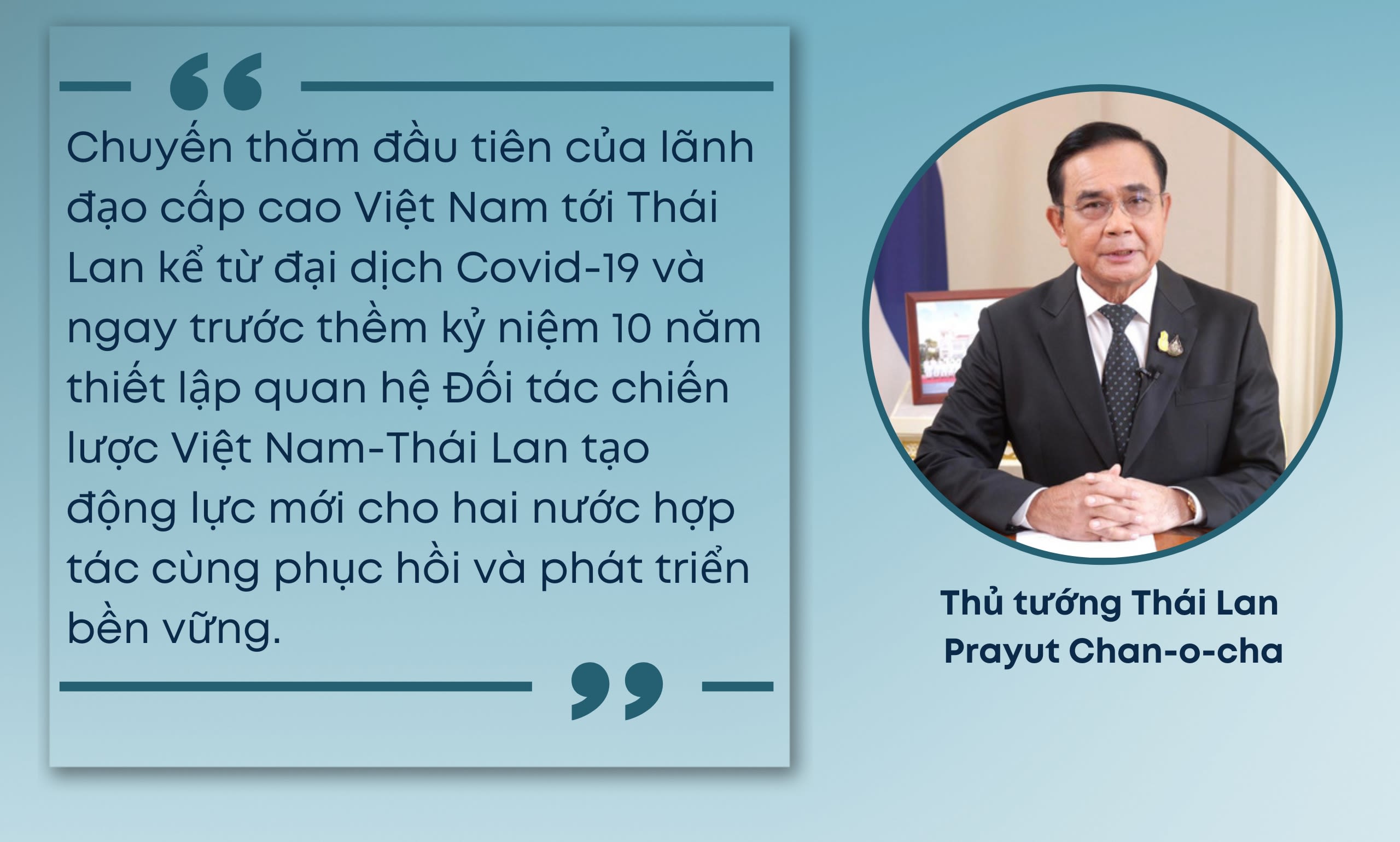 Kể từ khi thiết lập quan hệ ngoại giao năm 1967 và nhất là sau khi nâng tầm lên Đối tác chiến lược vào năm 2013 và Đối tác chiến lược tăng cường vào năm 2019, quan hệ Việt Nam-Thái Lan ngày càng phát triển tích cực. Trên cơ sở đó, các lãnh đạo hai bên đều khẳng định, hai nước là đối tác quan trọng của nhau tại khu vực.