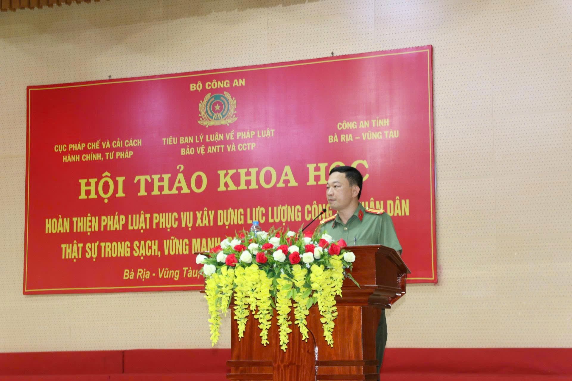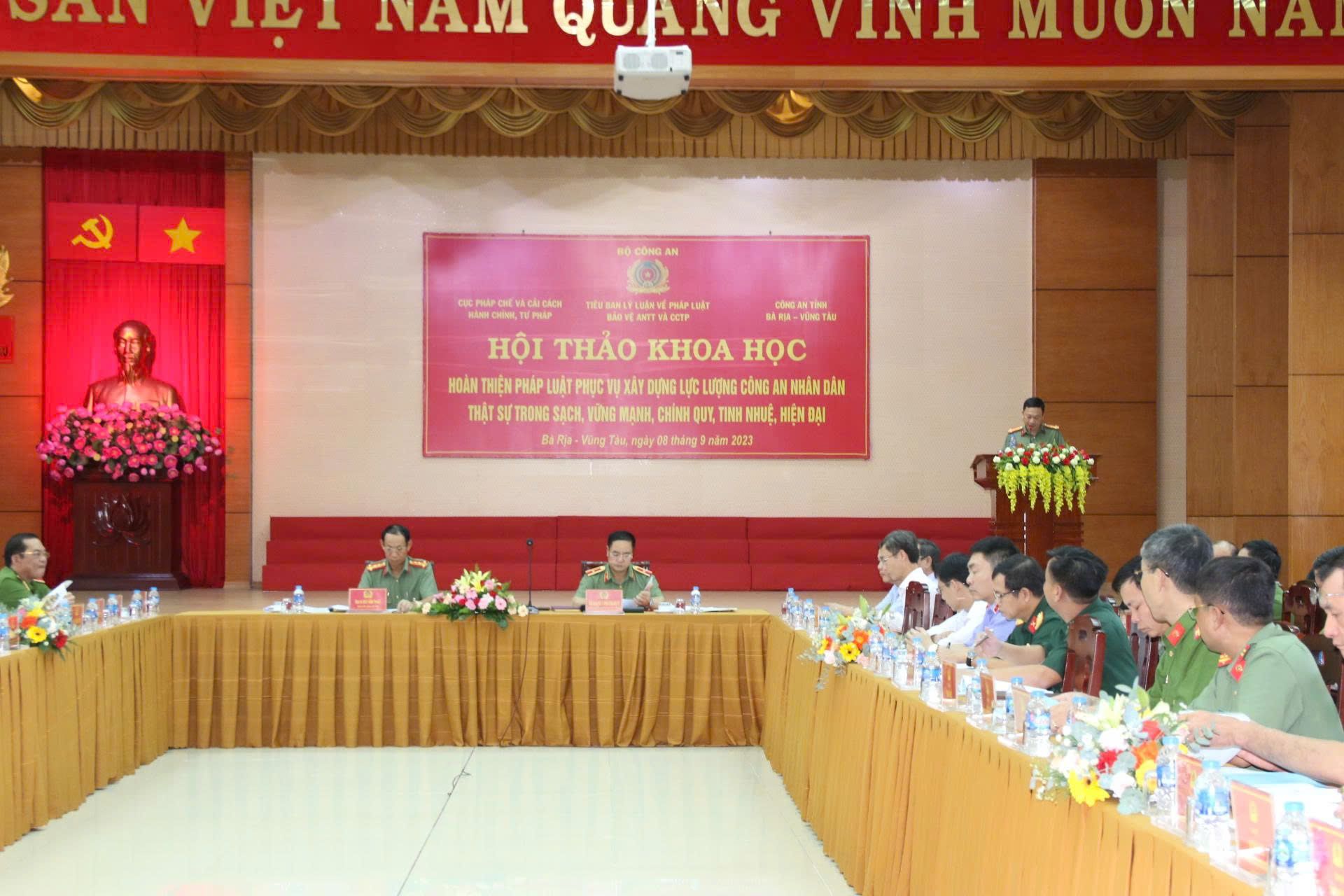Các đại biểu tham dự Hội thảo khoa học Hoàn thiện pháp luật phục vụ xây dựng lực lượng Công an nhân dân thật sự trong sạch, vững mạnh, chính quy, tinh nhuệ, hiện đại.