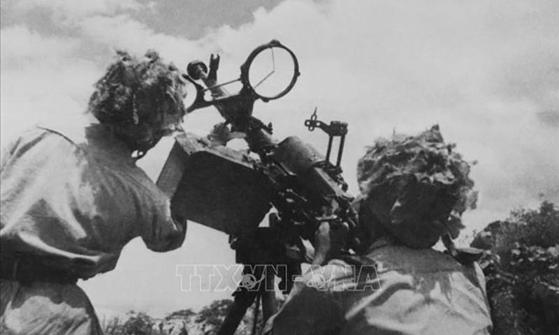 Bộ đội ta sử dụng súng máy phòng không tiêu diệt máy bay địch trong Chiến dịch Điện Biên Phủ.