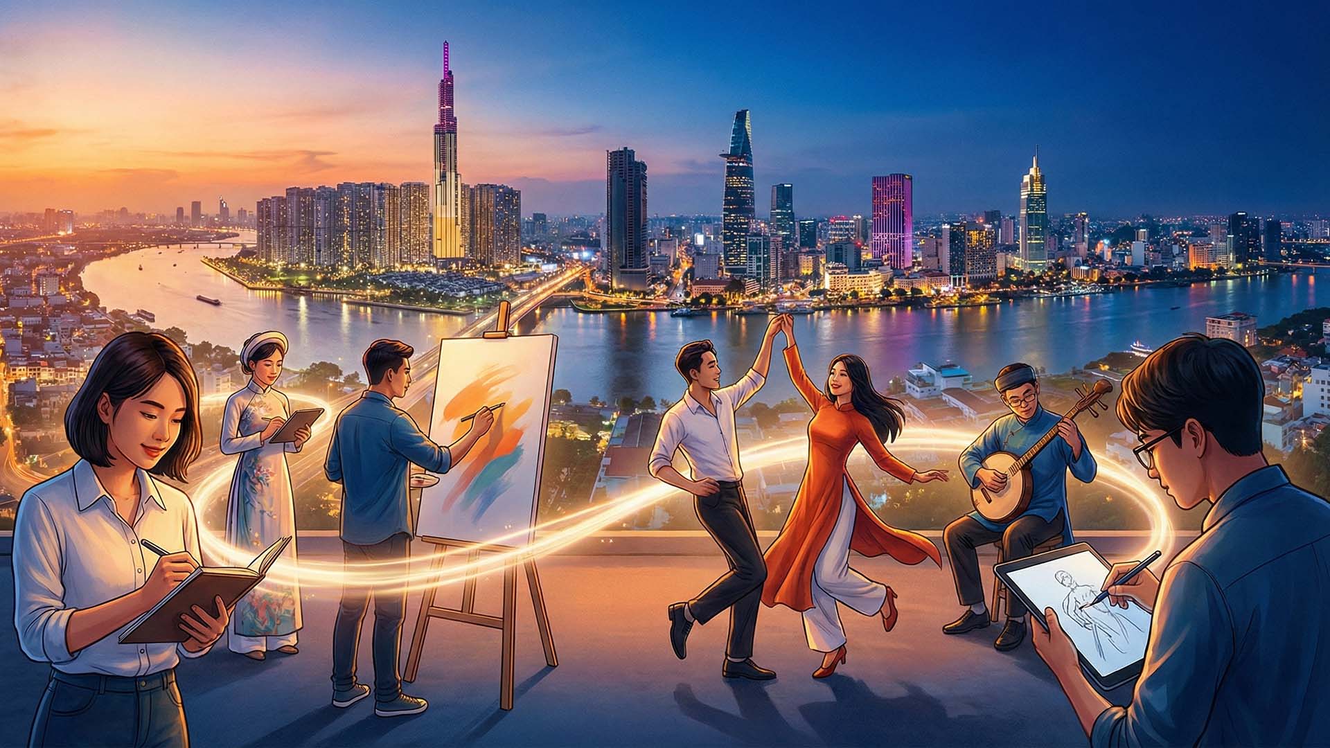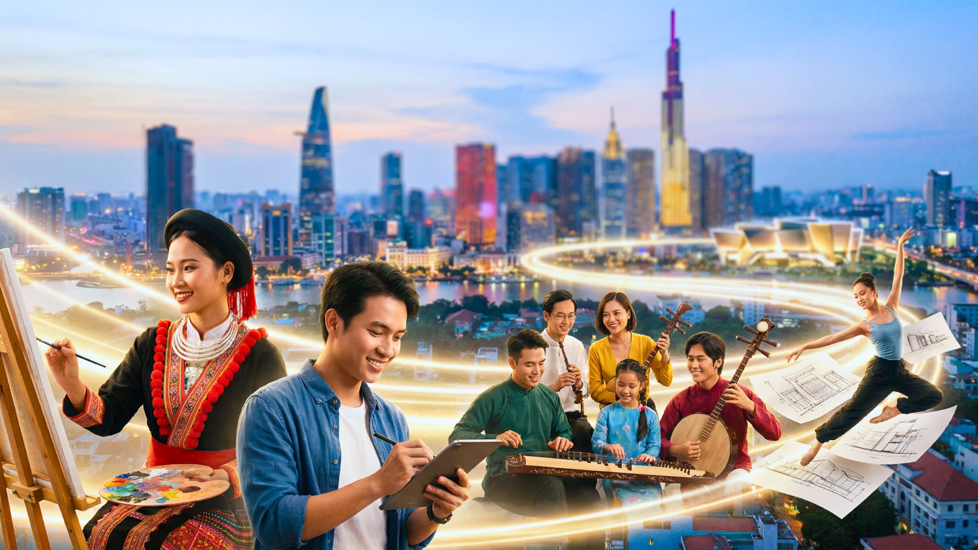 - Đẩy mạnh phát triển các ngành công nghiệp văn hoá; hình thành hệ sinh thái khởi nghiệp công nghiệp văn hoá, nghệ thuật sáng tạo.