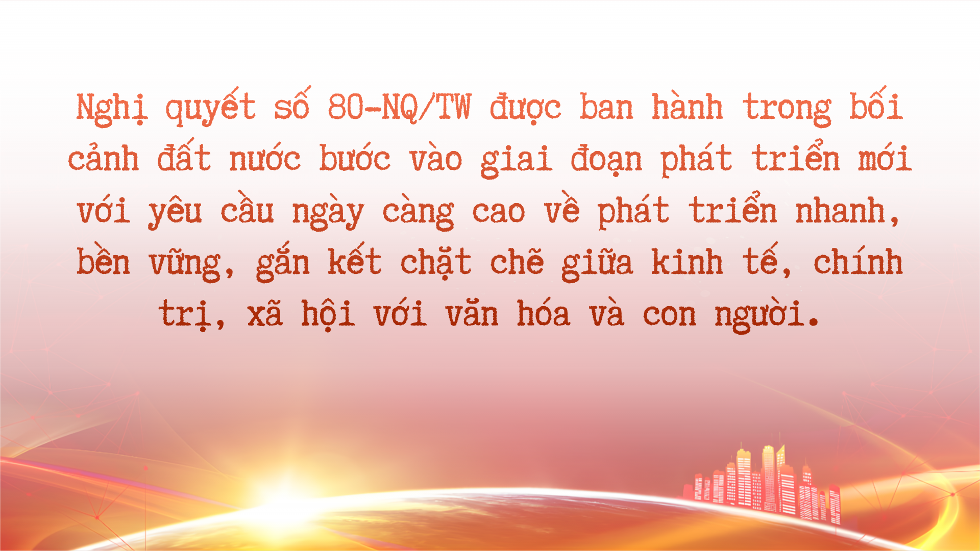 • Quán triệt quan điểm phát triển văn hóa ngang tầm với chính trị, kinh tế, xã hội, gắn với xây dựng thế trận an ninh văn hóa, an ninh con người, chủ quyền văn hóa số.