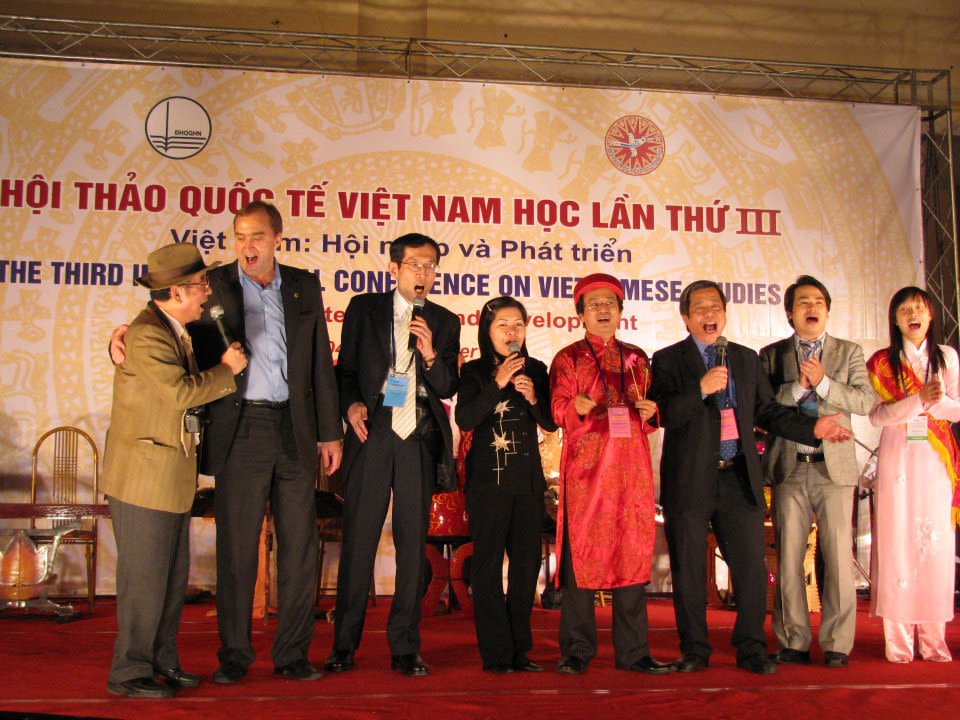 Cùng các nhà nghiên cứu hát vang bài hát "Việt Nam Hồ Chí Minh" tại Hội thảo quốc tế Việt Nam học lần thứ III.