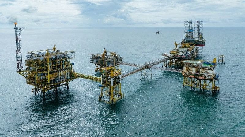 Giàn khai thác dầu khí trên biển của Petrovietnam. (Ảnh: Báo Nhân Dân)