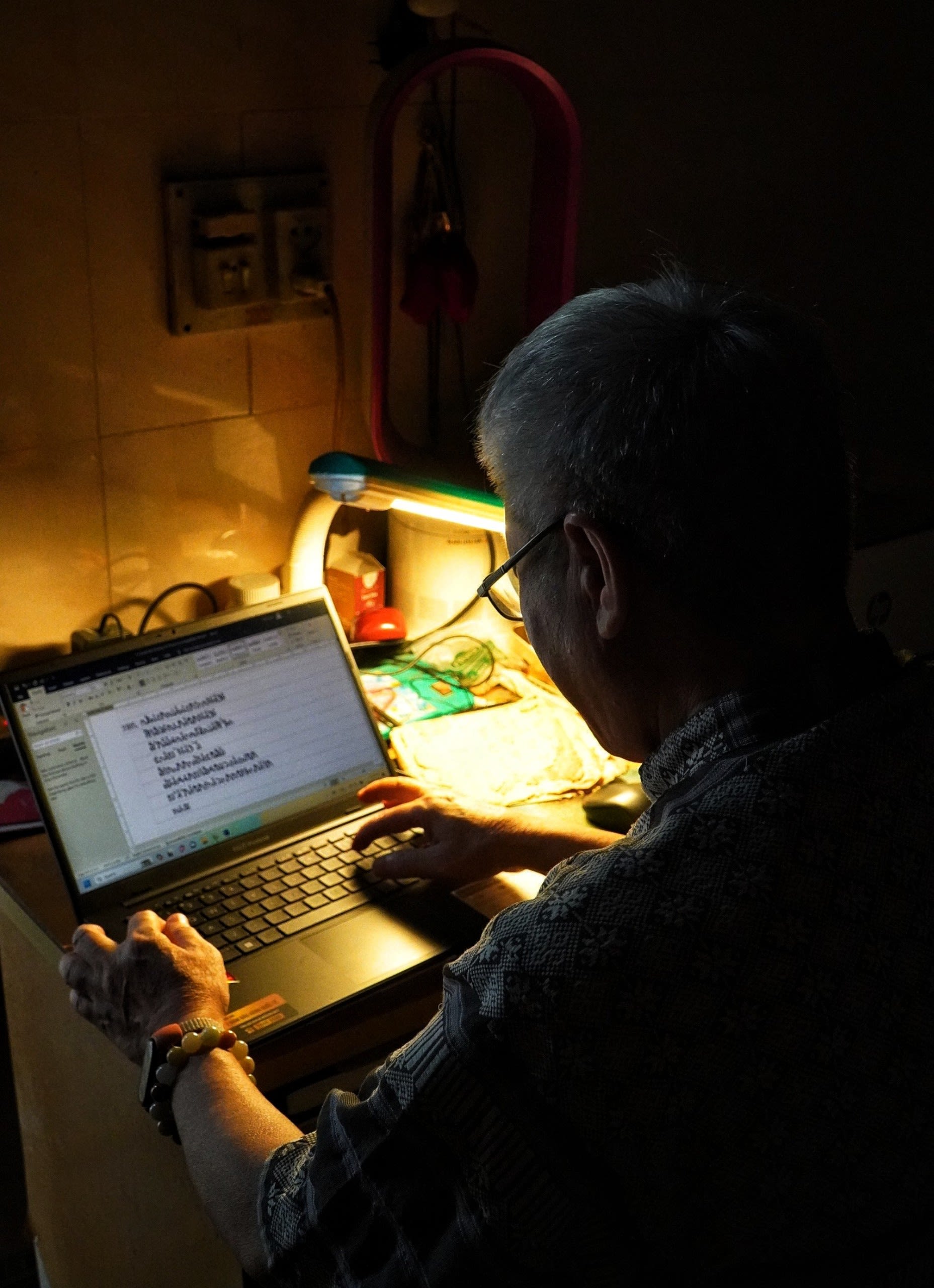 Nghệ nhân Ưu tú Sầm Văn Bình dành thời gian nghiên cứu và thiết kế thành công 5 font chữ Thái cài đặt để đánh chữ Thái trên máy tính.