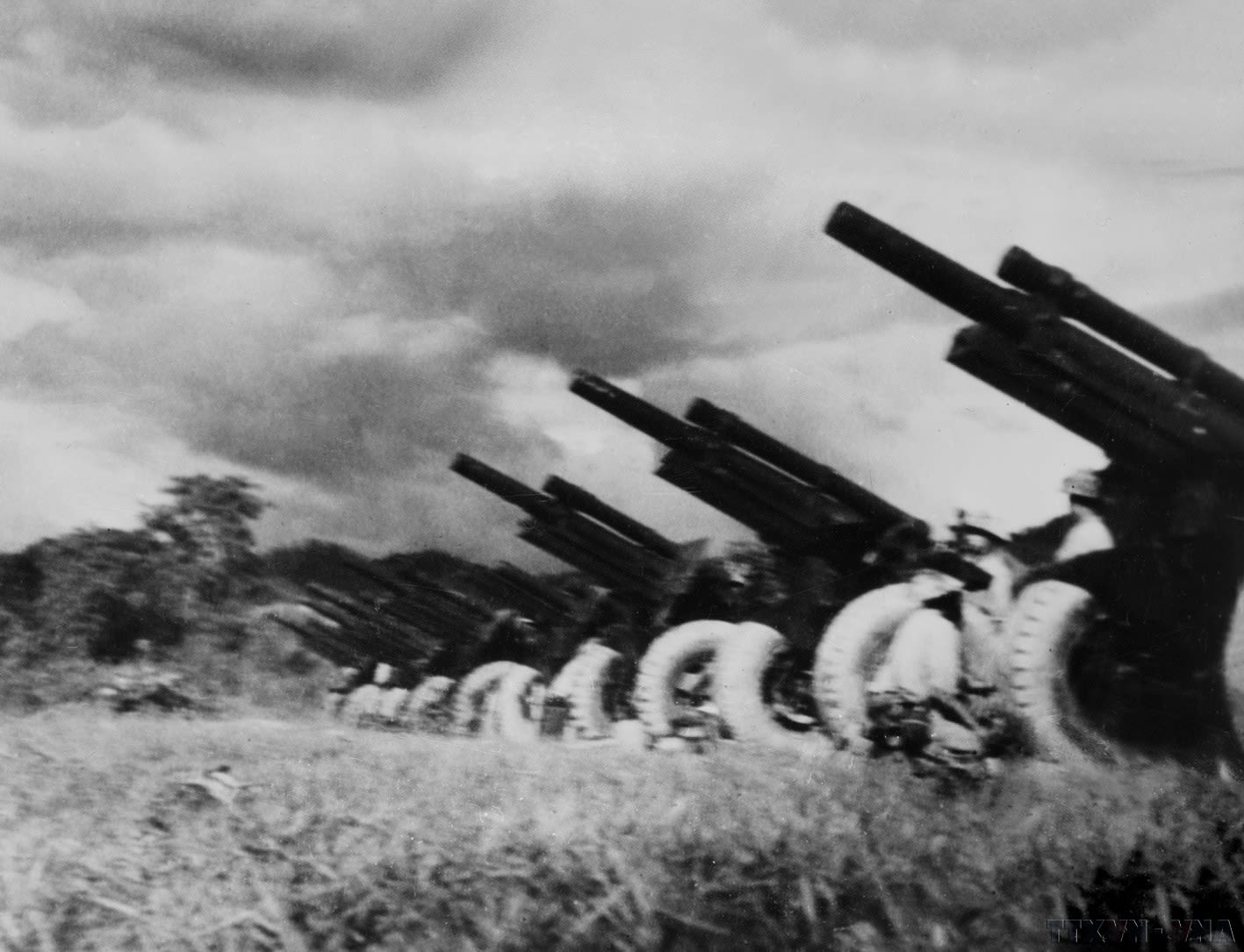 Ngày 13/3/1954, mở đầu chiến dịch, bộ đội pháo binh của ta đã dội bão lửa xuống đầu bọn xâm lược Pháp tại Điện Biên Phủ. (Ảnh: TTXVN)