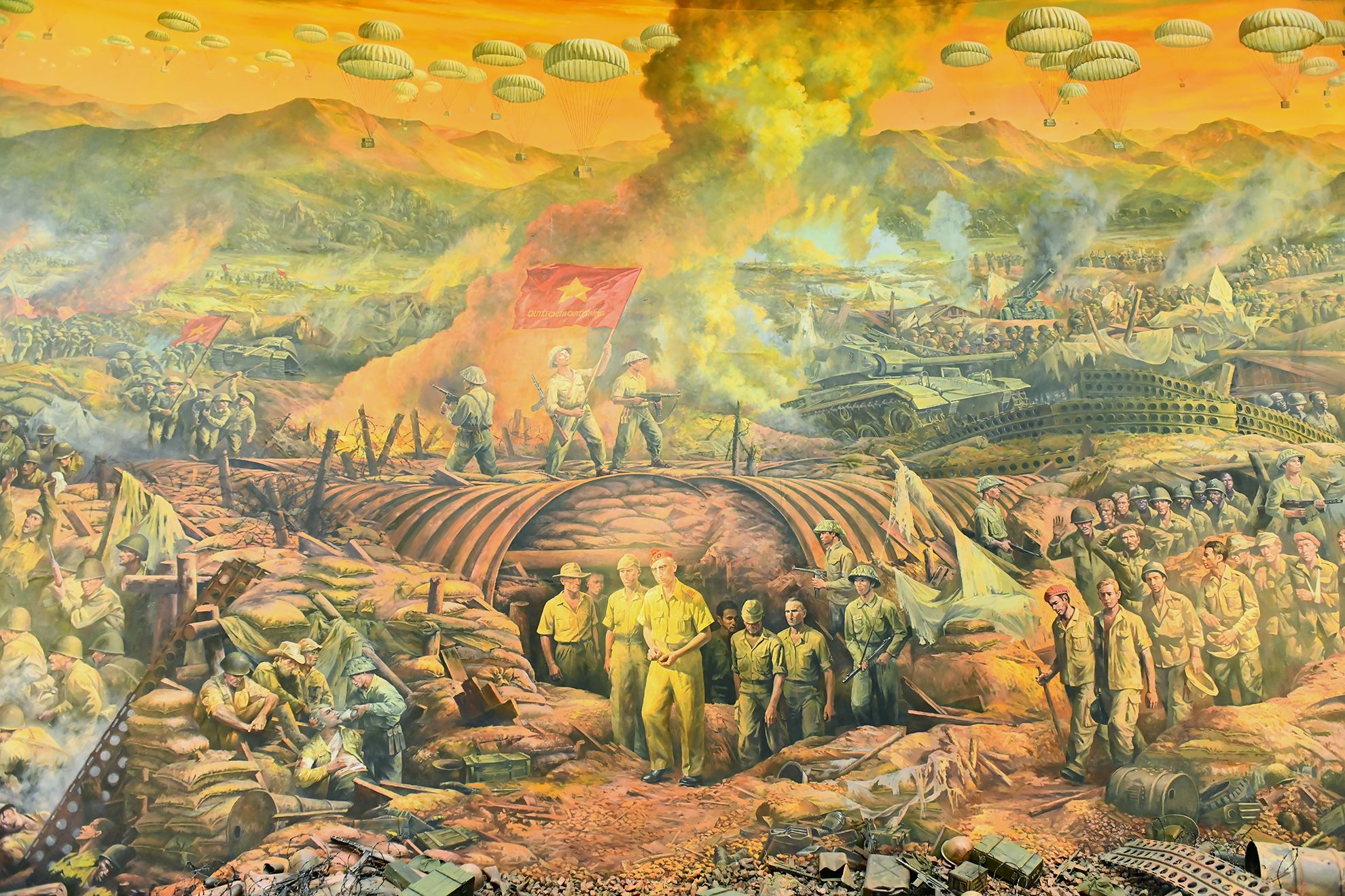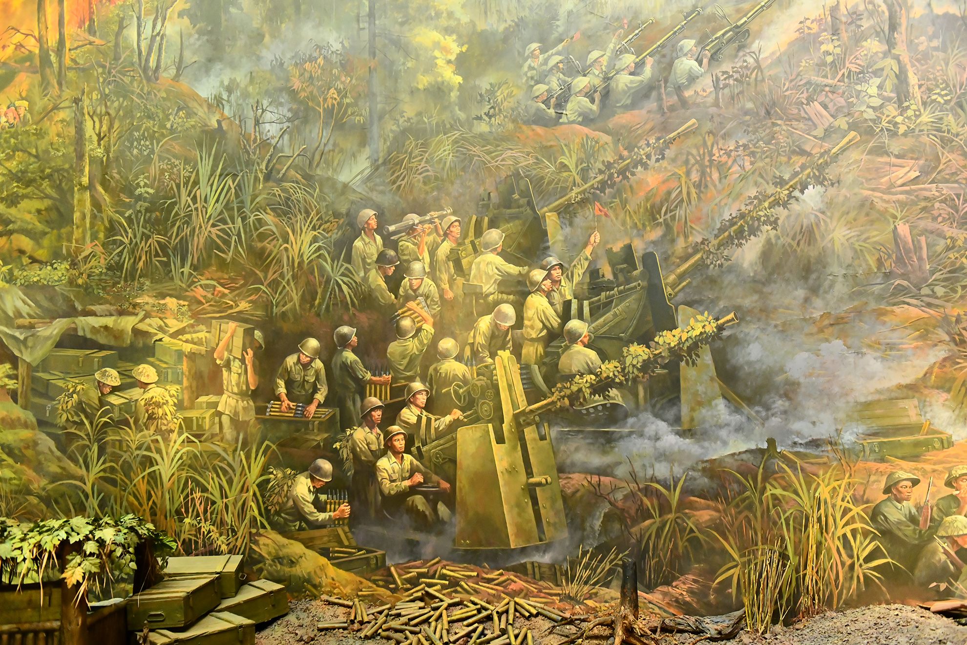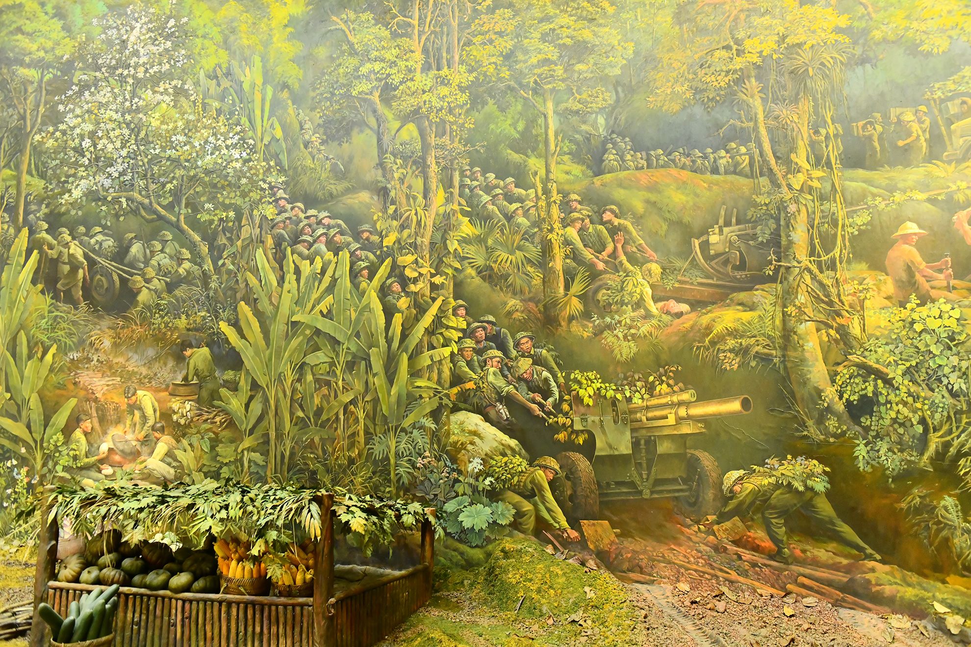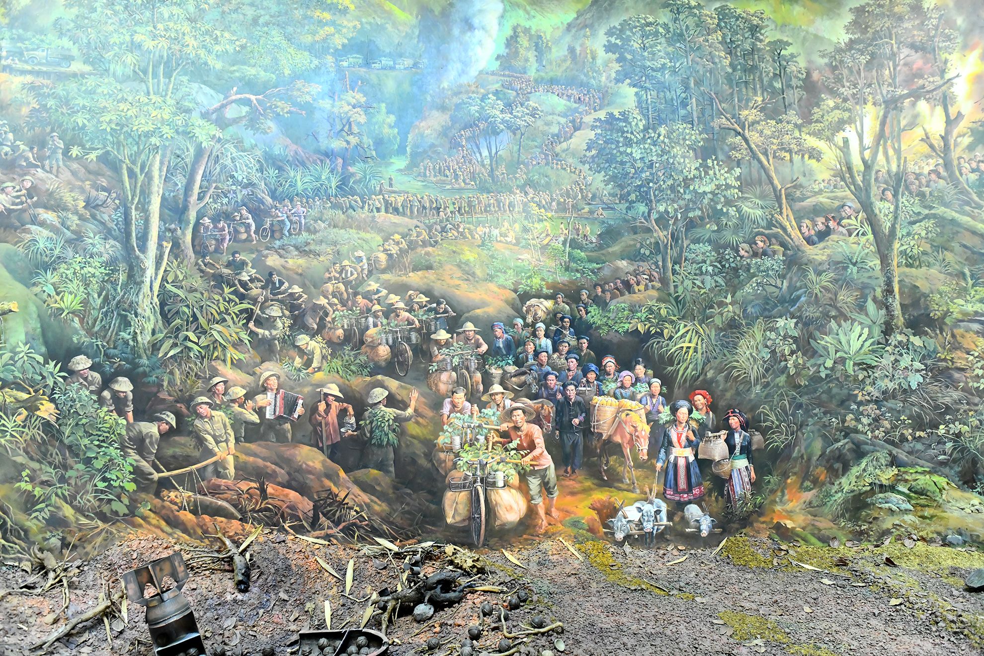 Trường đoạn 1 “Toàn dân ra trận”. (Ảnh chụp một phần bức tranh panorama Chiến dịch Điện Biên Phủ do Đăng Khoa thực hiện)