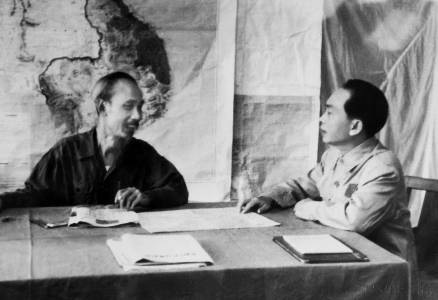 Thay mặt Trung ương Đảng và Chính phủ, Hồ chủ tịch trực tiếp giao nhiệm vụ cho Đại tướng Võ Nguyên Giáp nghiên cứu kế hoạch tác chiến và mở chiến dịch Điện Biên Phủ. (Ảnh: TTXVN)