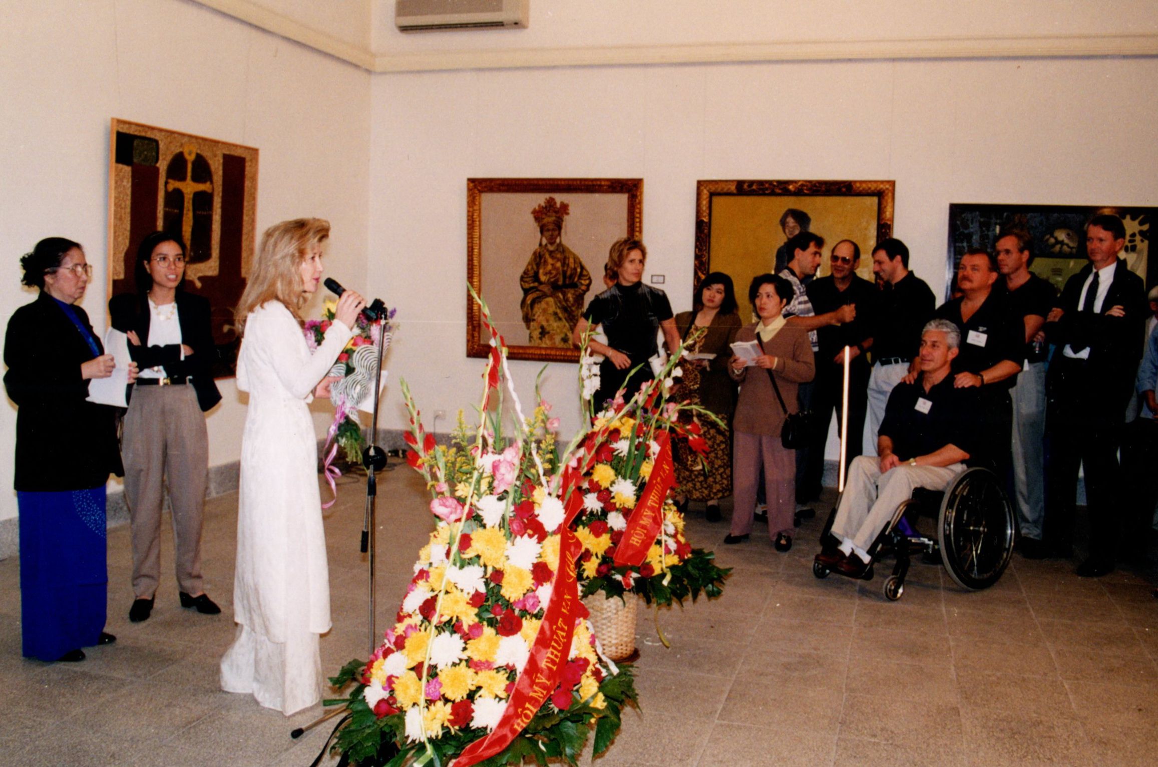Bà Suzanne Fecht phát biểu mở lời cho một buổi triển lãm tranh ở Hà Nội. Bức ảnh được chụp vào năm 1997.