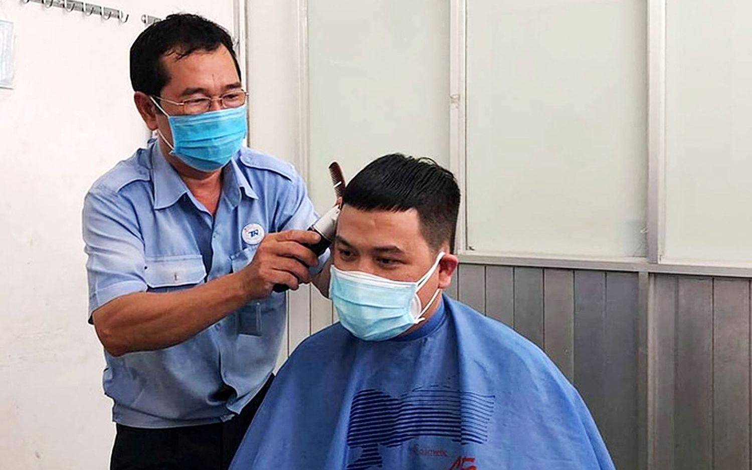 Y, bác sĩ Bệnh viện Thống Nhất cắt tóc trước khi vào tâm dịch - một hình ảnh đầy cảm hứng. Ảnh: BỆNH VIỆN THỐNG NHẤT