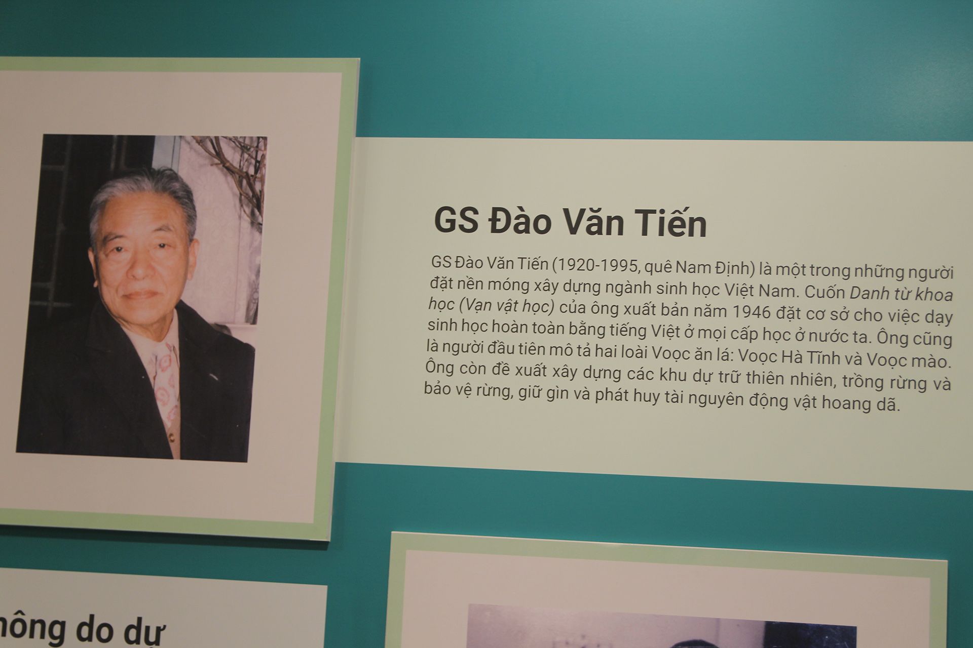 Giáo sư, Nhà giáo nhân dân Đào Văn Tiến (sinh năm 1920) là một trong những người đặt nền móng xây dựng ngành Sinh học Việt Nam. Ông cũng là người đầu tiên mô tả hai loài voọc ăn lá: voọc Hà Tĩnh và voọc mào. Đào Văn Tiến còn đề xuất xây dựng các khu dự trữ thiên nhiên, trồng rừng, bảo vệ rừng, nhằm giữ gìn và phát huy tài nguyên động vật hoang dã.