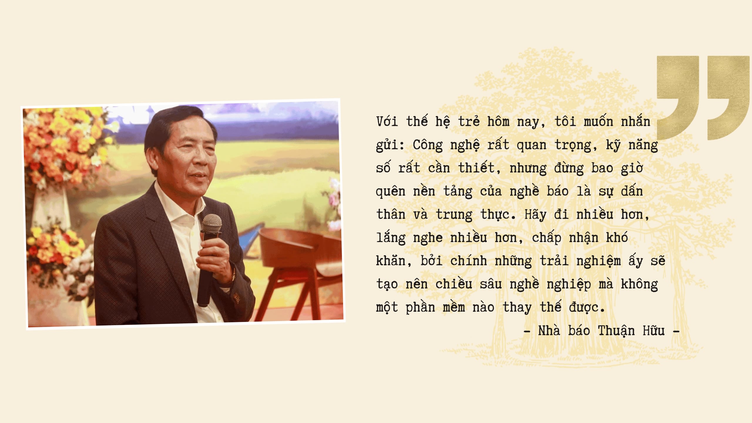 Vì vậy, với thế hệ trẻ hôm nay, tôi muốn nhắn gửi: Công nghệ rất quan trọng, kỹ năng số rất cần thiết, nhưng đừng bao giờ quên nền tảng của nghề báo là sự dấn thân và trung thực. Hãy đi nhiều hơn, lắng nghe nhiều hơn, chấp nhận khó khăn, bởi chính những trải nghiệm ấy sẽ tạo nên chiều sâu nghề nghiệp mà không một phần mềm nào thay thế được.