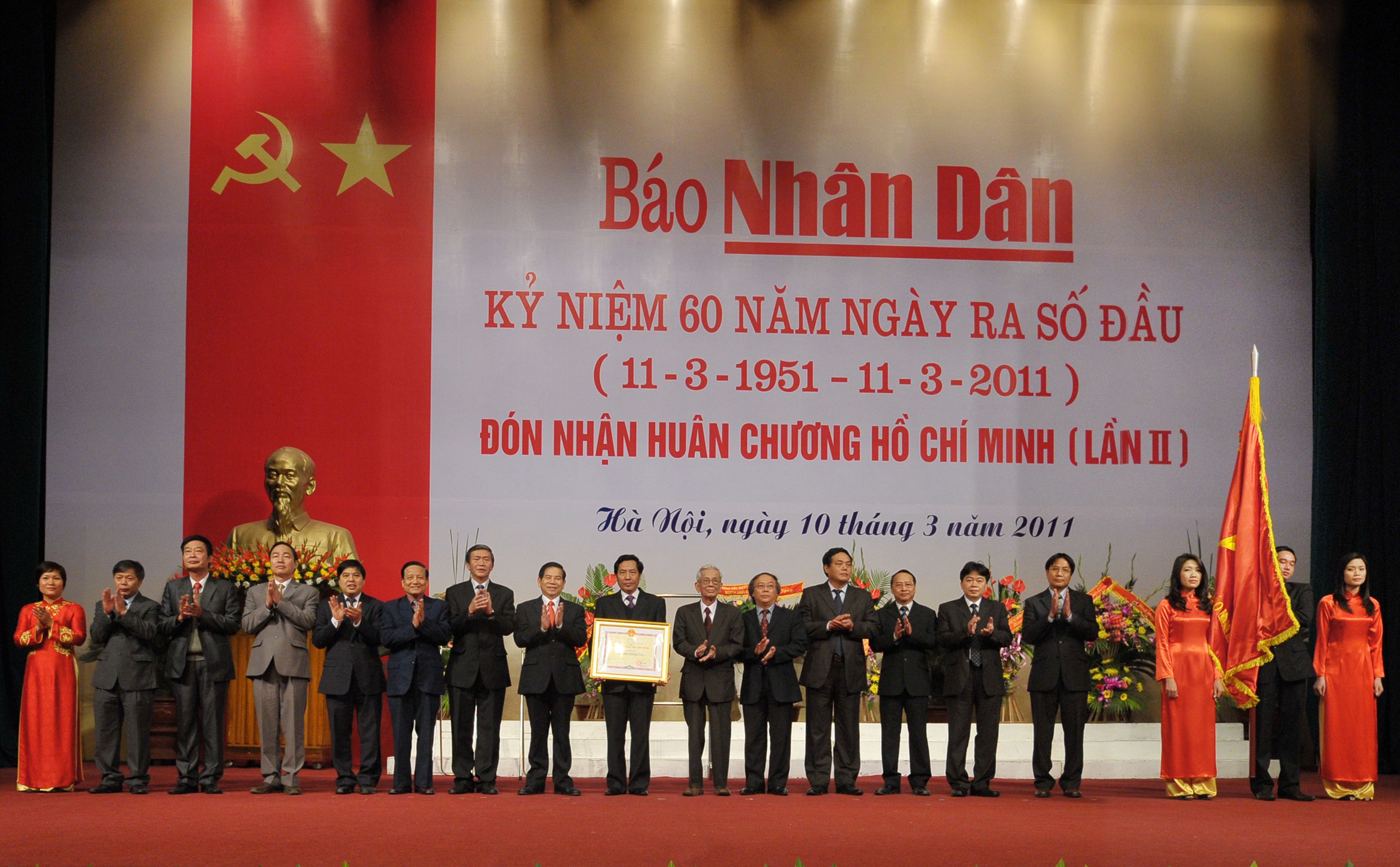 Lễ kỷ niệm 60 năm Ngày ra số đầu Báo Nhân Dân và đón nhận Huân chương Hồ Chí Minh (lần II), ngày 10/3/2011. Ảnh tư liệu