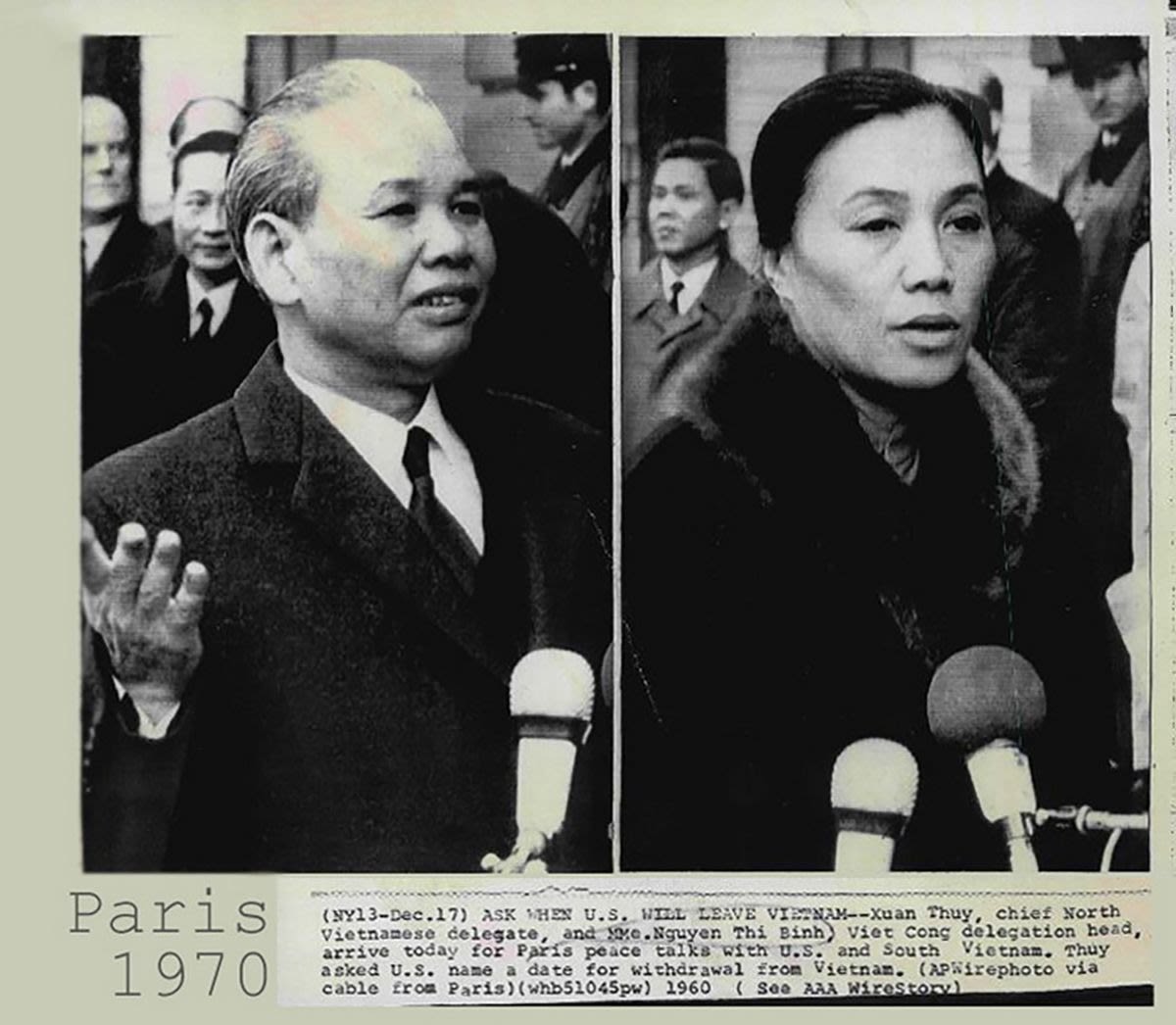 Bà Nguyễn Thị Bình và ông Xuân Thủy tại Paris năm 1970. Ảnh: BẢO TÀNG LỊCH SỬ QUỐC GIA