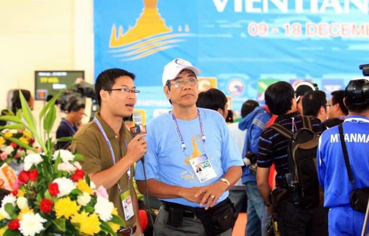 Nhà báo Nguyễn Lưu tác nghiệp tại SEA Games 2009 ở Lào.