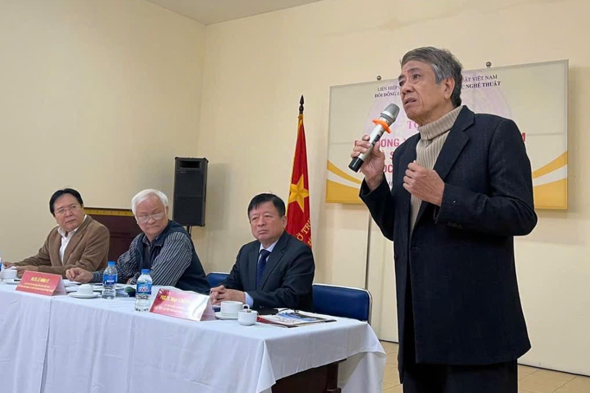 Nhà báo Nguyễn Lưu chia sẻ ý kiến tại Hội đồng Lý luận, Phê bình Văn học, Nghệ thuật Trung ương.