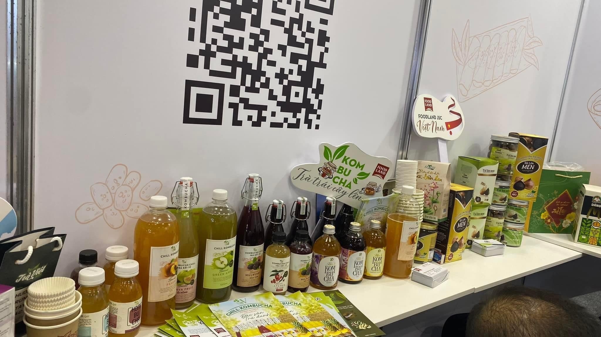 Các sản phẩm Kombucha được giới thiệu tại Hội chợ quốc tế thực phẩm và đồ uống Foodex Japan 2023.