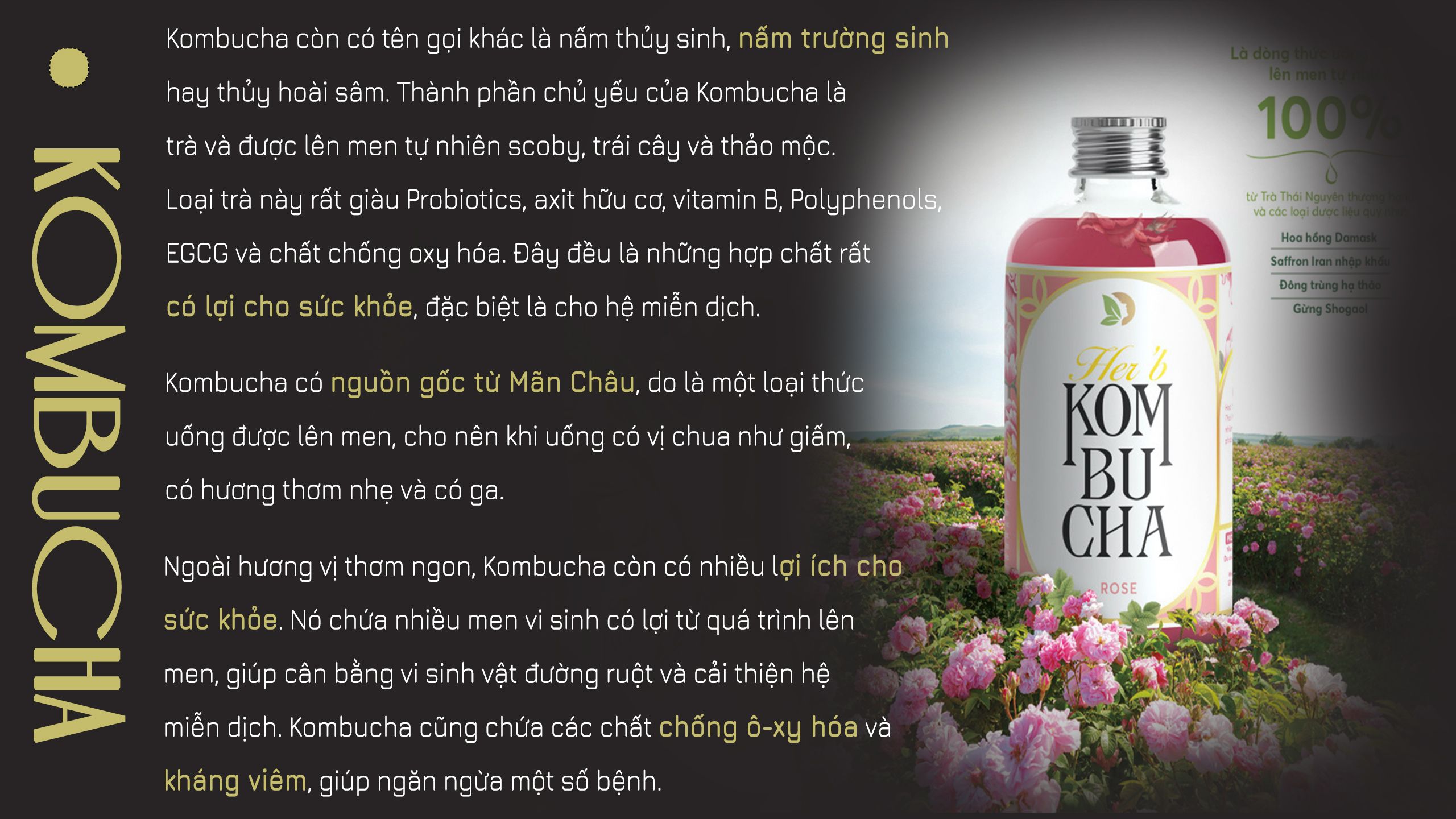 Trà lên men kombucha sử dụng nguyên liệu là trà sạch của các hợp tác xã đã được tỉnh Thái Nguyên cấp chứng nhận OCOP, sau đó thu hái theo quy trình và ủ men scoby theo công thức độc quyền. Sản phẩm đã được Sở Khoa học và Công nghệ Thái Nguyên triển khai từ đề tài nghiên cứu cấp tỉnh "Nghiên cứu hoàn thiện quy trình công nghệ sản xuất, chế biến đồ uống giải khát lên men từ chè Thái Nguyên". Năm 2021, sản phẩm đã được trao định danh "Product of Thai Nguyen", góp phần lan tỏa thương hiệu, gia tăng giá trị kinh tế, nâng cao vị thế của trà Thái Nguyên ra thị trường trong và ngoài nước.