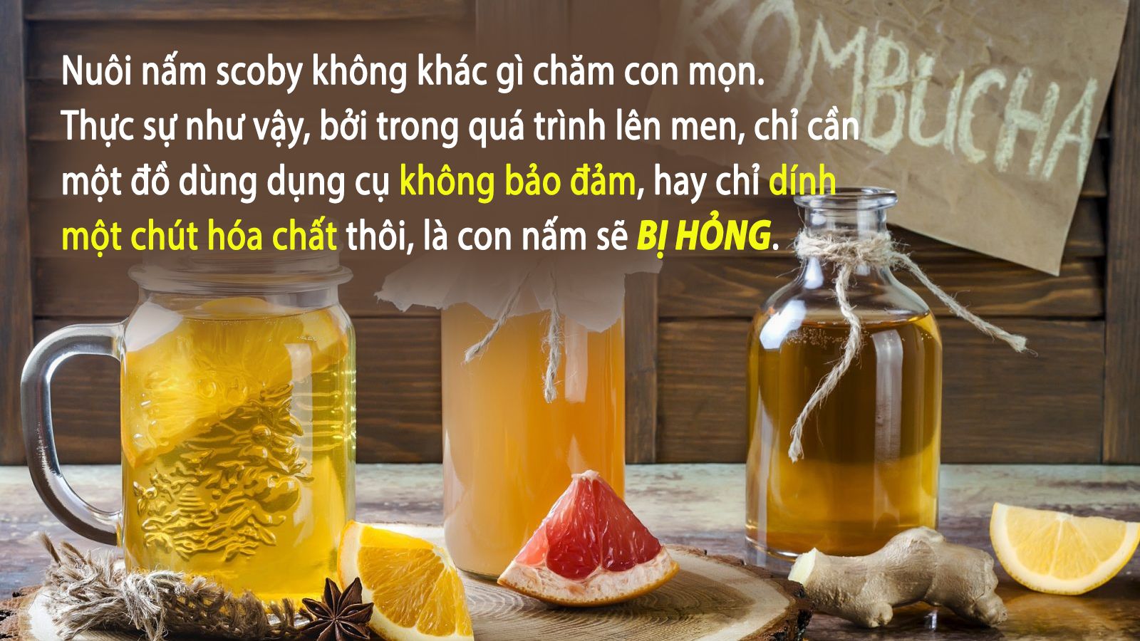 “Trà Kombucha là một loại trà lên men từ con nấm thủy sâm–nấm scoby. Tôi thường nói vui rằng: Nuôi nấm scoby không khác gì chăm con mọn. Thực sự như vậy, bởi trong quá trình lên men, chỉ cần một đồ dùng dụng cụ không bảo đảm, hay chỉ dính một chút hóa chất thôi, là con nấm sẽ bị hỏng”, Thanh Việt kể lại quá trình làm những sản phẩm đầu tiên của mình.