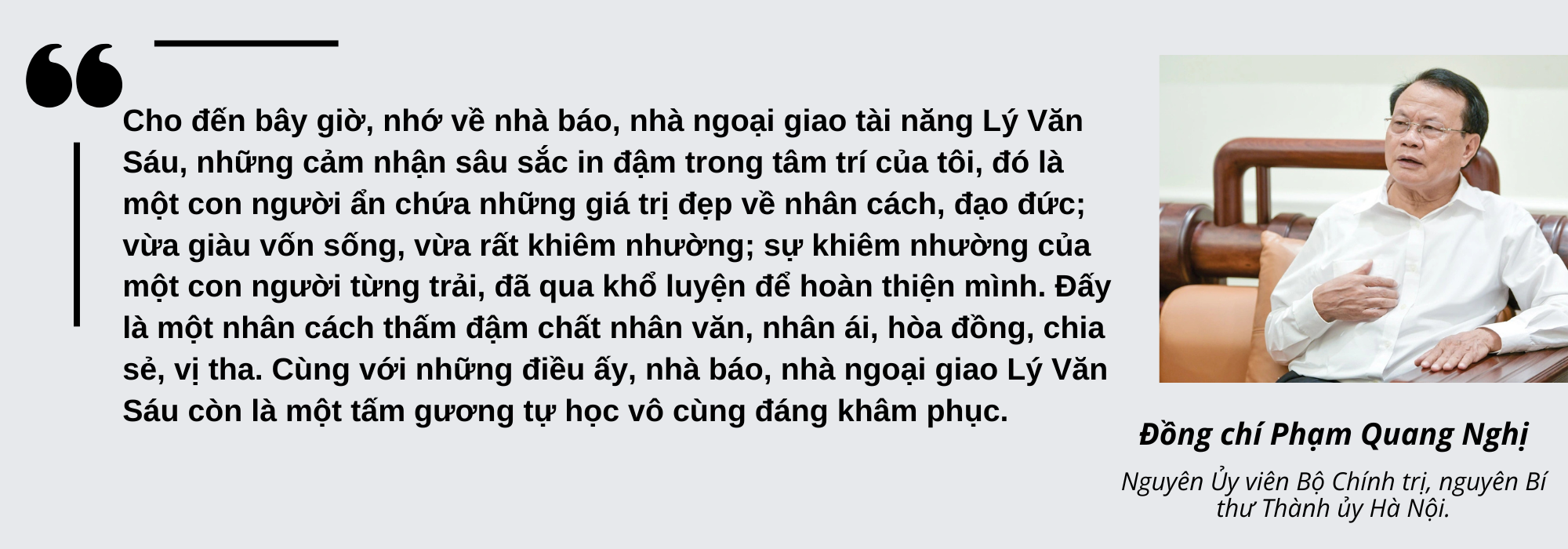Tham gia hoạt động đối ngoại trong những thời điểm then chốt của lịch sử dân tộc, nhà báo Lý Văn Sáu đã thể hiện rõ bản lĩnh, sự sắc sảo và tinh thần trách nhiệm của một người làm báo cách mạng. Không chỉ là người đưa tin, ông còn là người truyền lửa, mang hình ảnh và lập trường chính nghĩa của Việt Nam đến với bạn bè quốc tế bằng một tâm thế tự tin, chủ động và đầy trí tuệ.