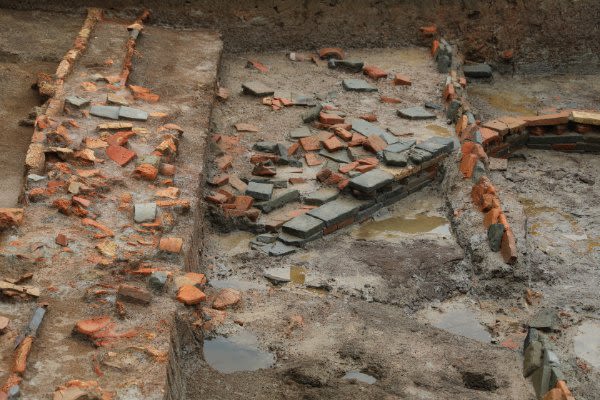 Nền công trình đào được tại khu vực Cố đô Hoa Lư.