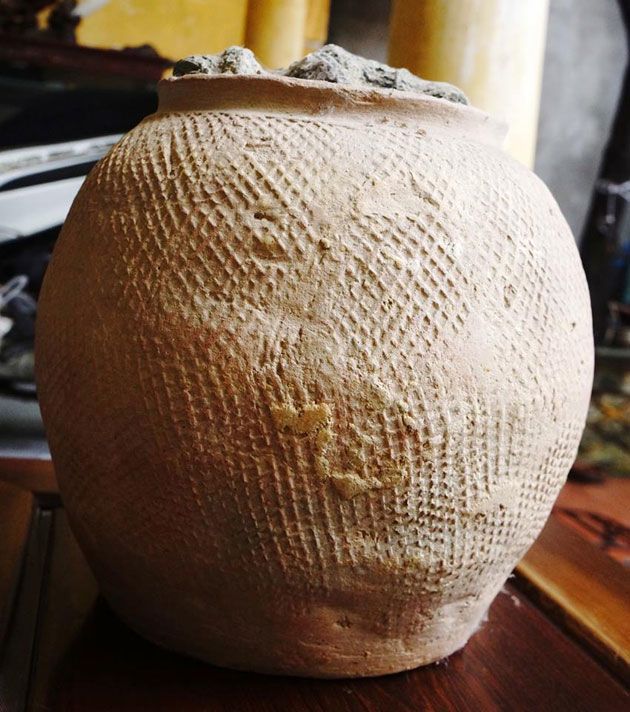 Vò tiền cổ của người dân đào được ở Vườn Chuối. Ảnh: Ông Nguyễn Văn Thắng, người dân xã Kim Chung cung cấp