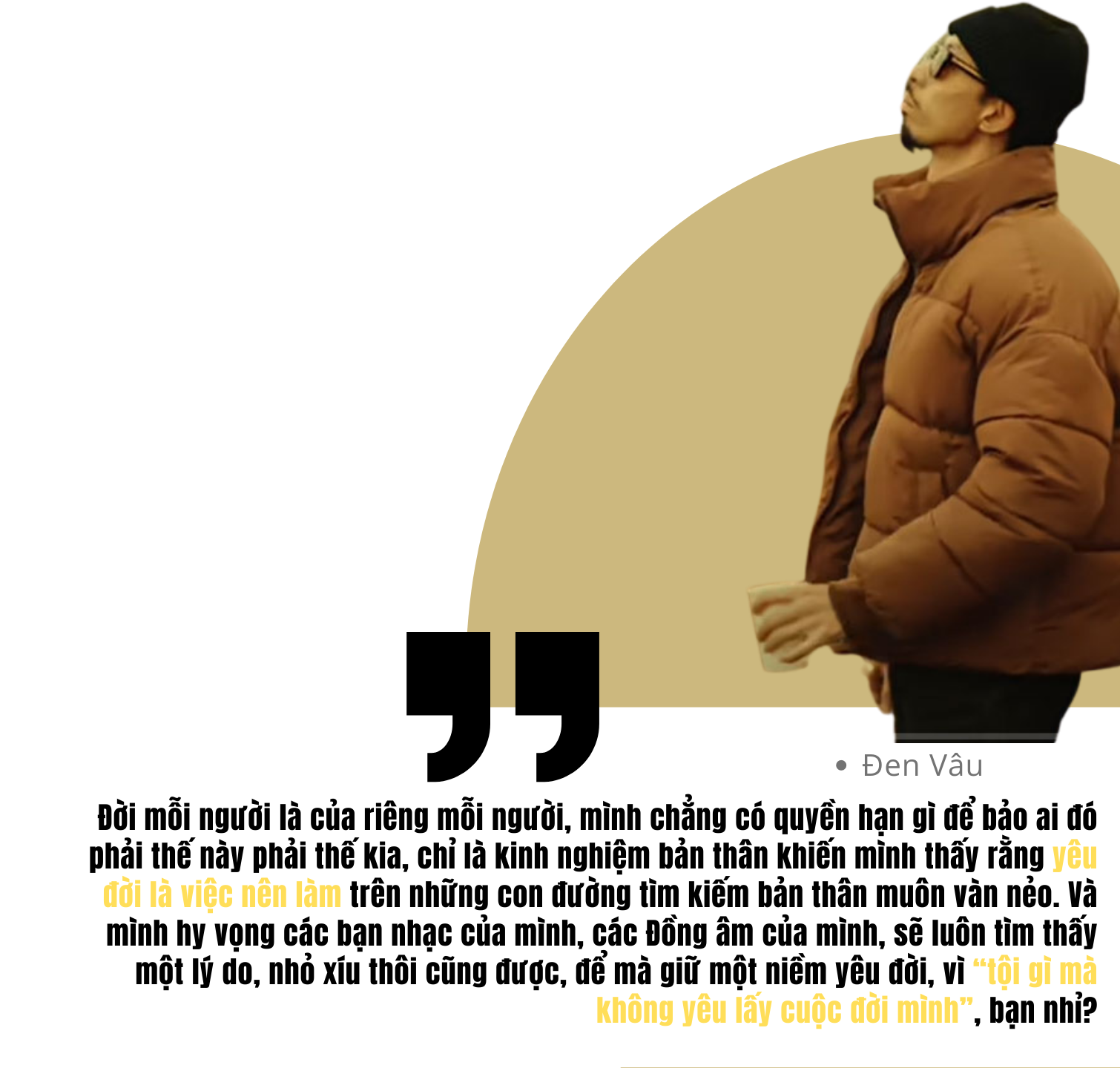 Đen Vâu là một trong số các nghệ sĩ có sức sáng tạo mạnh mẽ trên thị trường âm nhạc Việt Nam. Những MV mà Đen giới thiệu luôn luôn có lượt xem rất cao, được chia sẻ nhiều. Hình ảnh đẹp, gần gũi với cuộc sống, mang những tình cảm, tâm lý về gia đình, tình yêu, tình bạn, lời ca giàu tính triết lý nhưng được thể hiện giản dị, dễ nhớ, dễ thuộc…, đó là những lý do khiến các ca khúc của Đen hễ ra mắt là lại được người xem đón đợi.