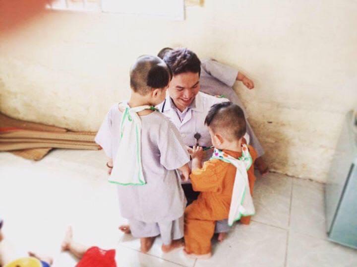 Bác sĩ trẻ Dương Minh Tuấn vui đùa cùng các bệnh nhi.