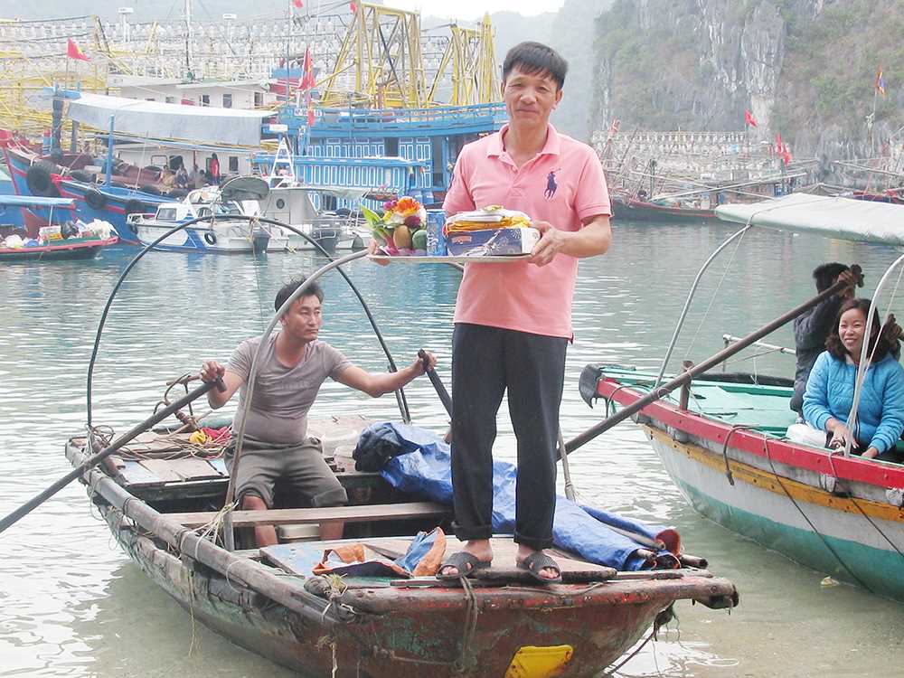 Ngư dân trên Vịnh Hạ Long sắp lễ cúng tạ "ông sông, bà bể" dịp cuối năm. (Ảnh: Cổng thông tin điện tử tỉnh Quảng Ninh)