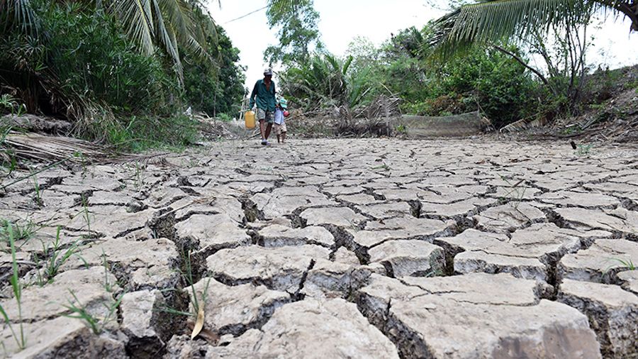 Do ảnh hưởng của biến đổi khí hậu, hạn hán, xâm nhập nghiêm trọng hơn tại các địa phương vùng đồng bằng sông Cửu Long. (Ảnh: Viết Chung)